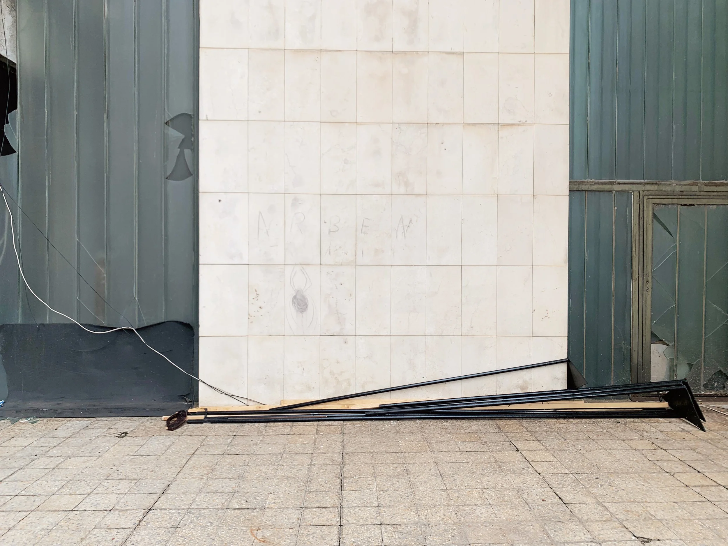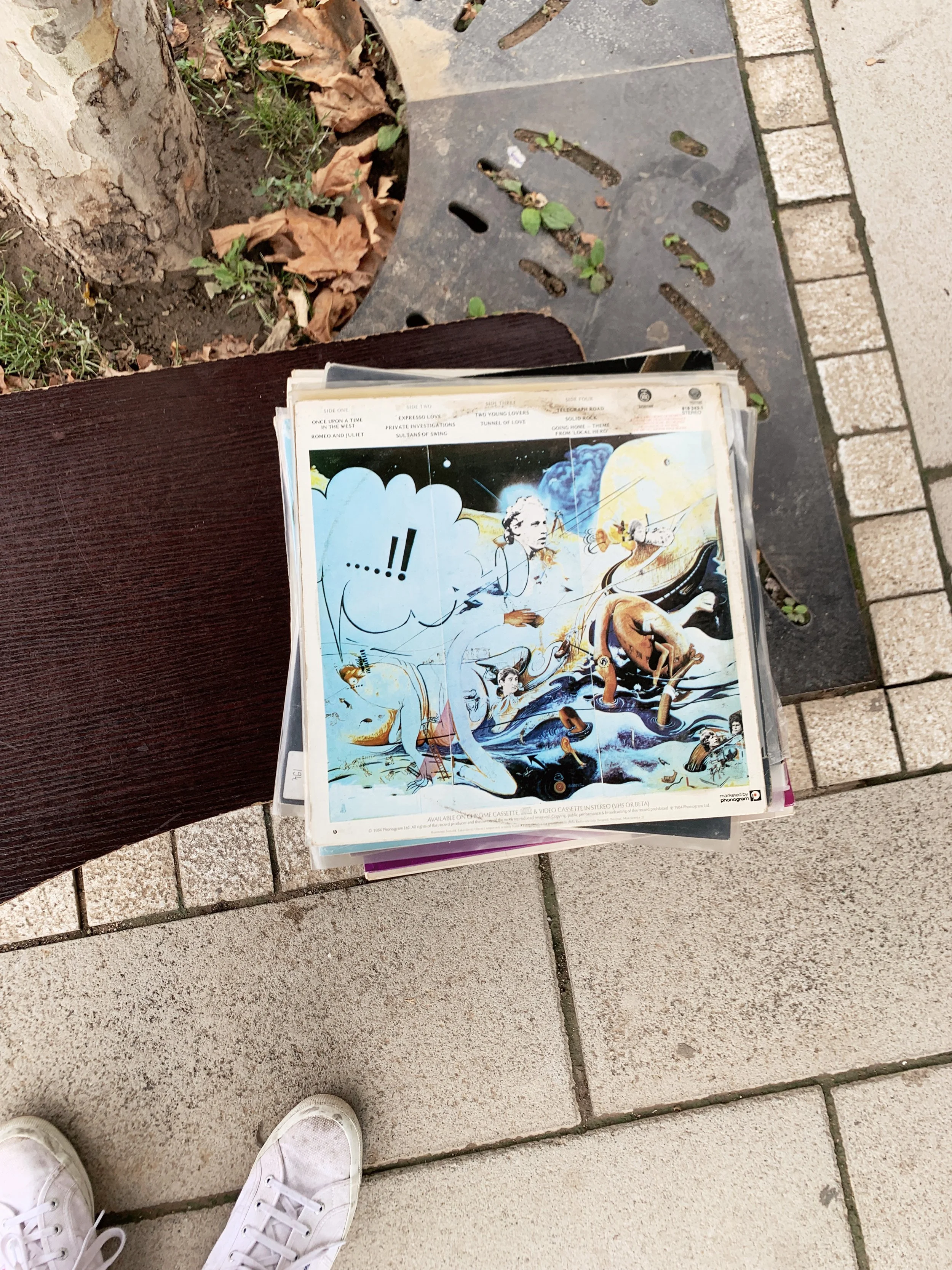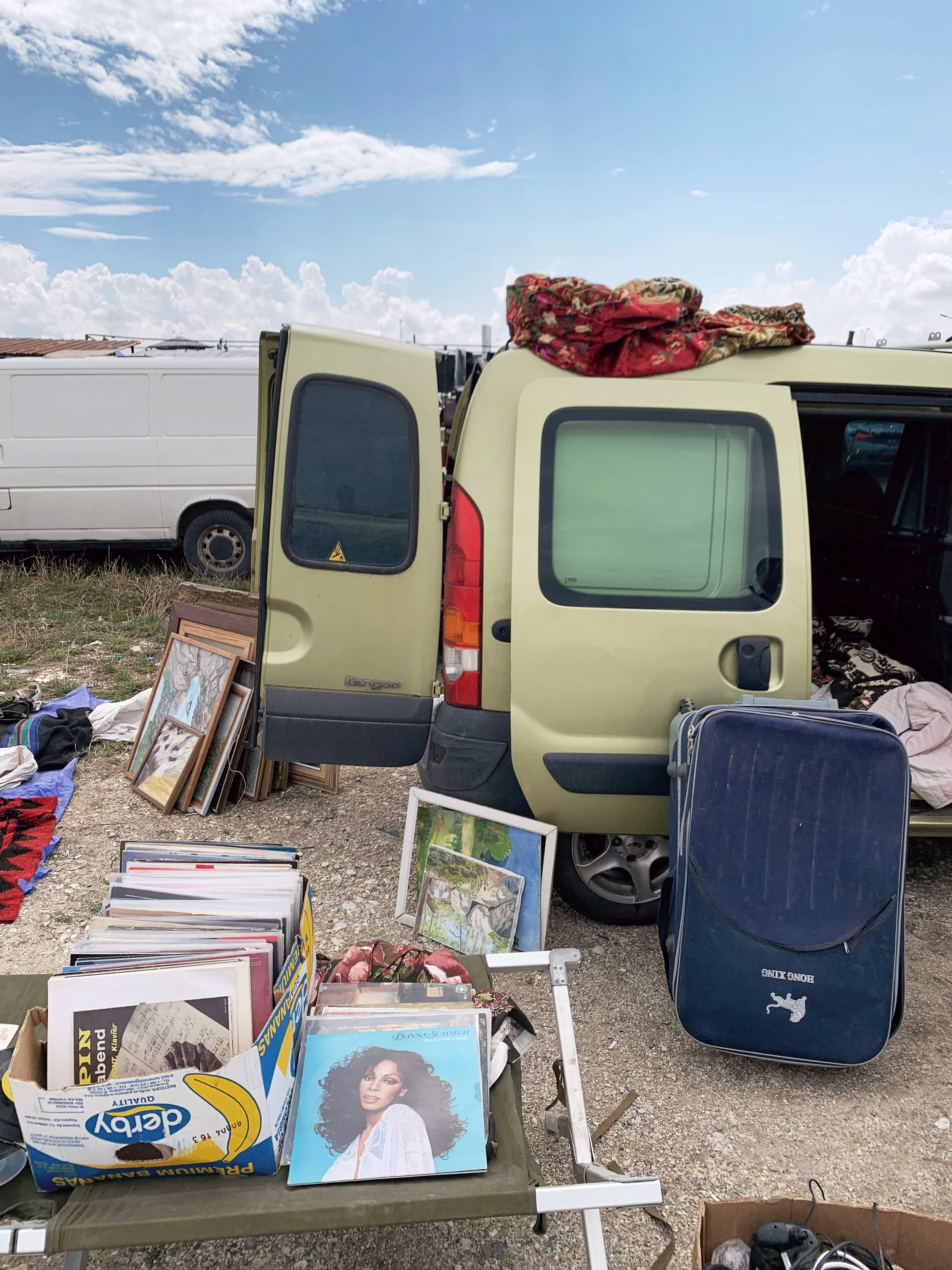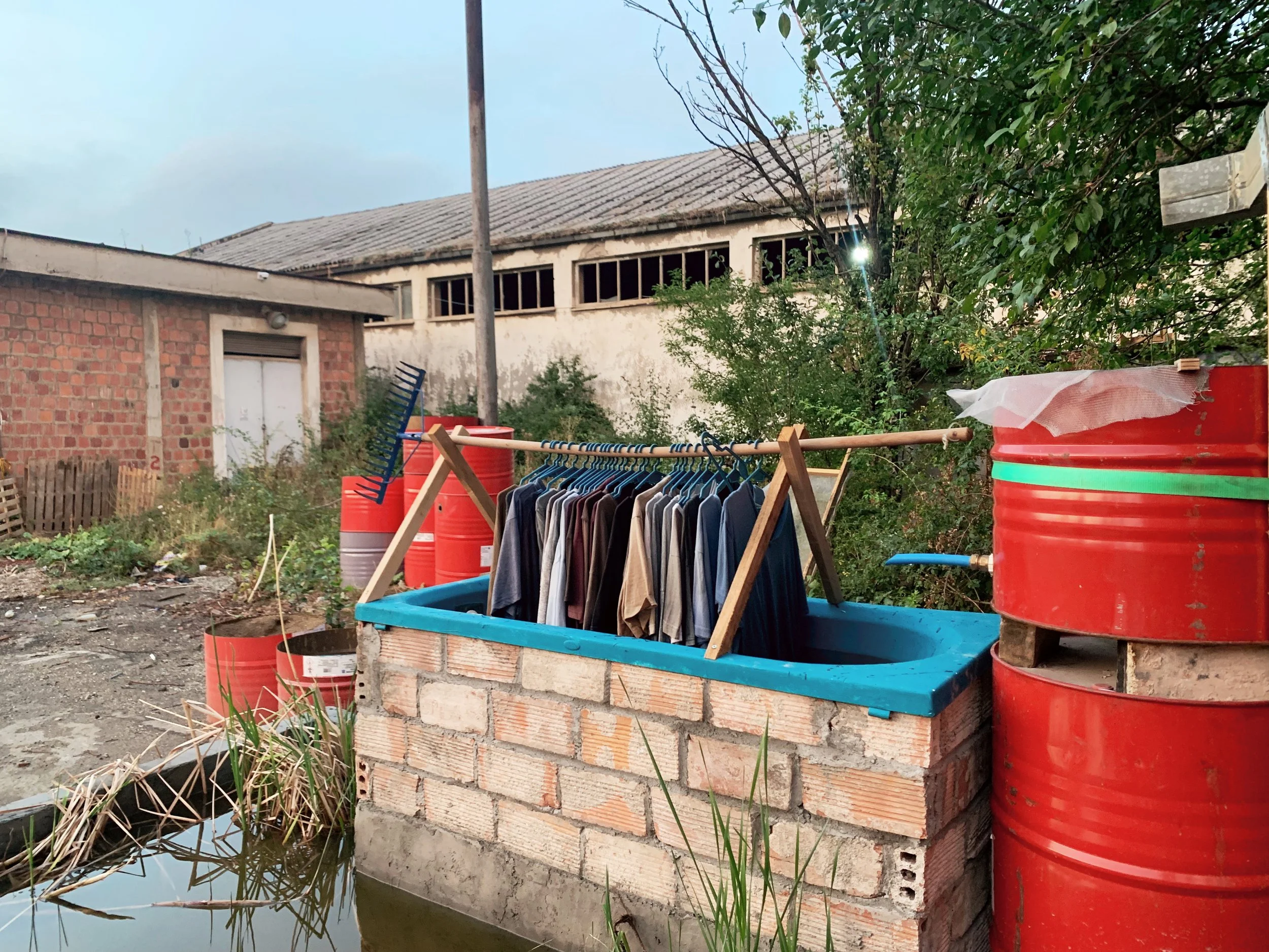 Young Slovenian art students going to thrift stores. We took a walk and talked about art schools and biennials. They showed me their work, a studio turned in a friendly social space, with some curious objects, and a kind of kintsugi done on a concrete floor.