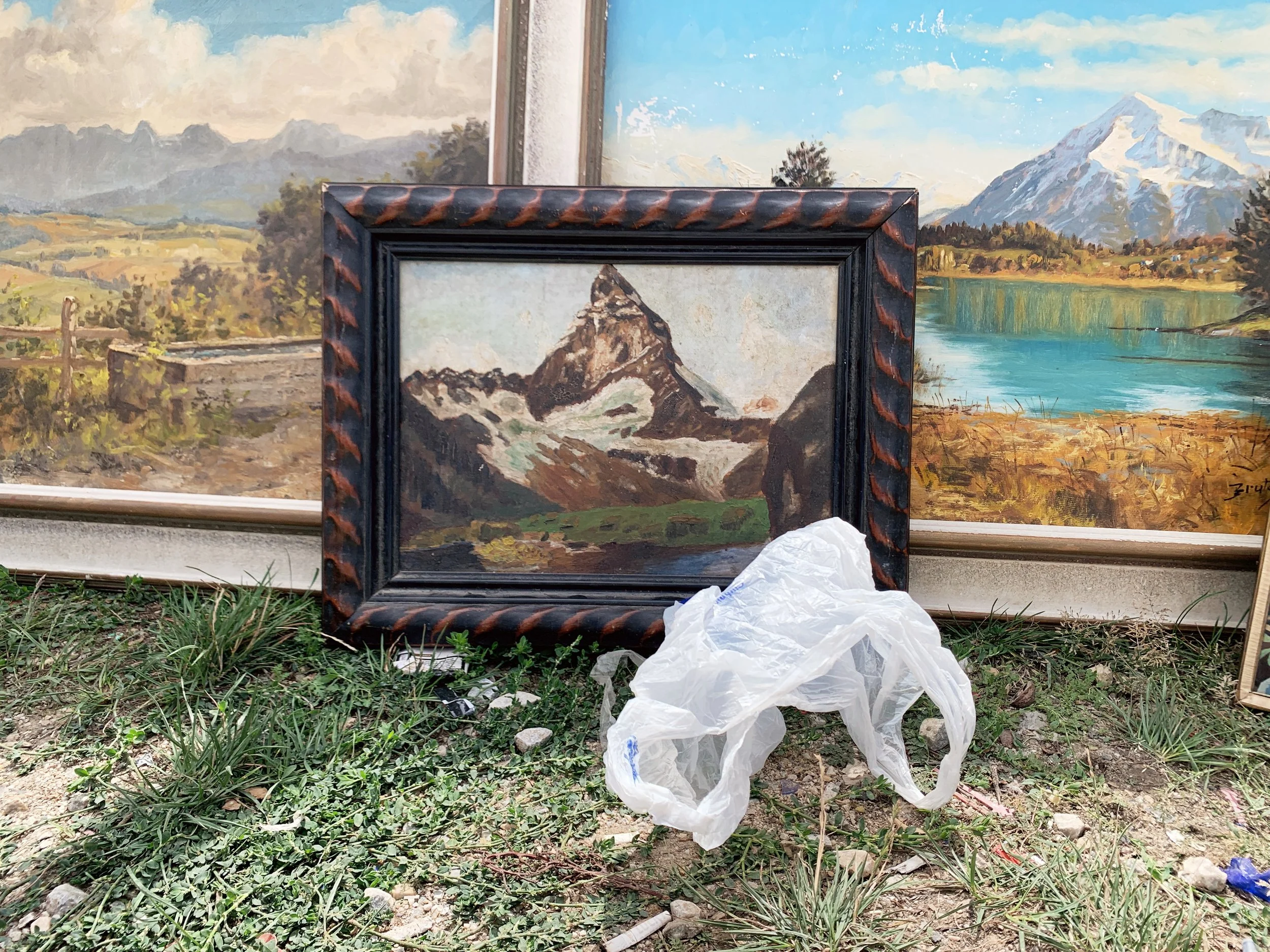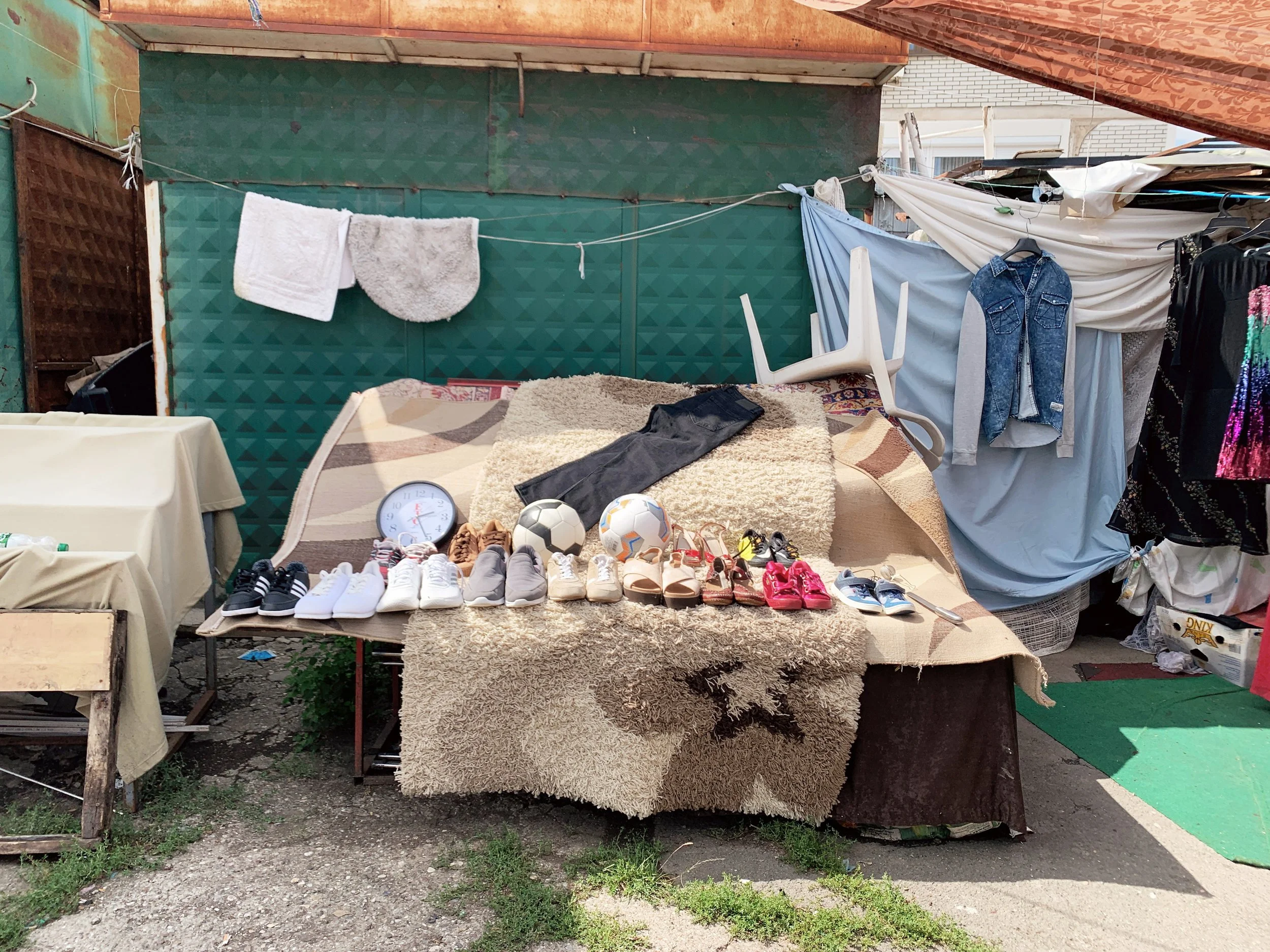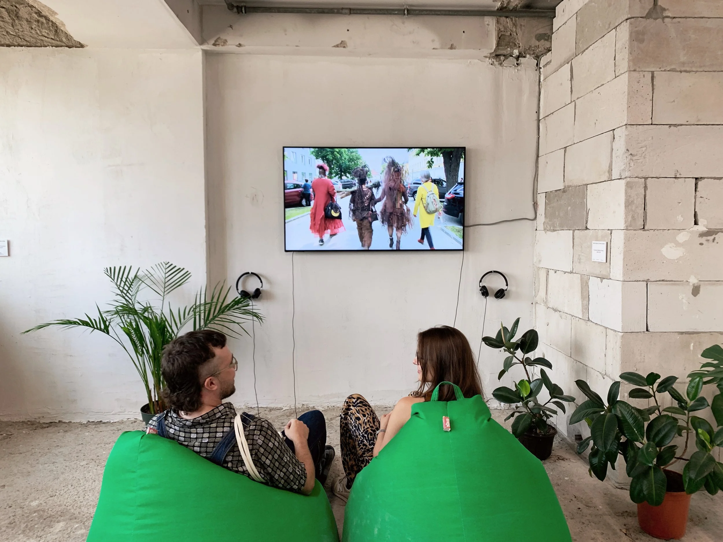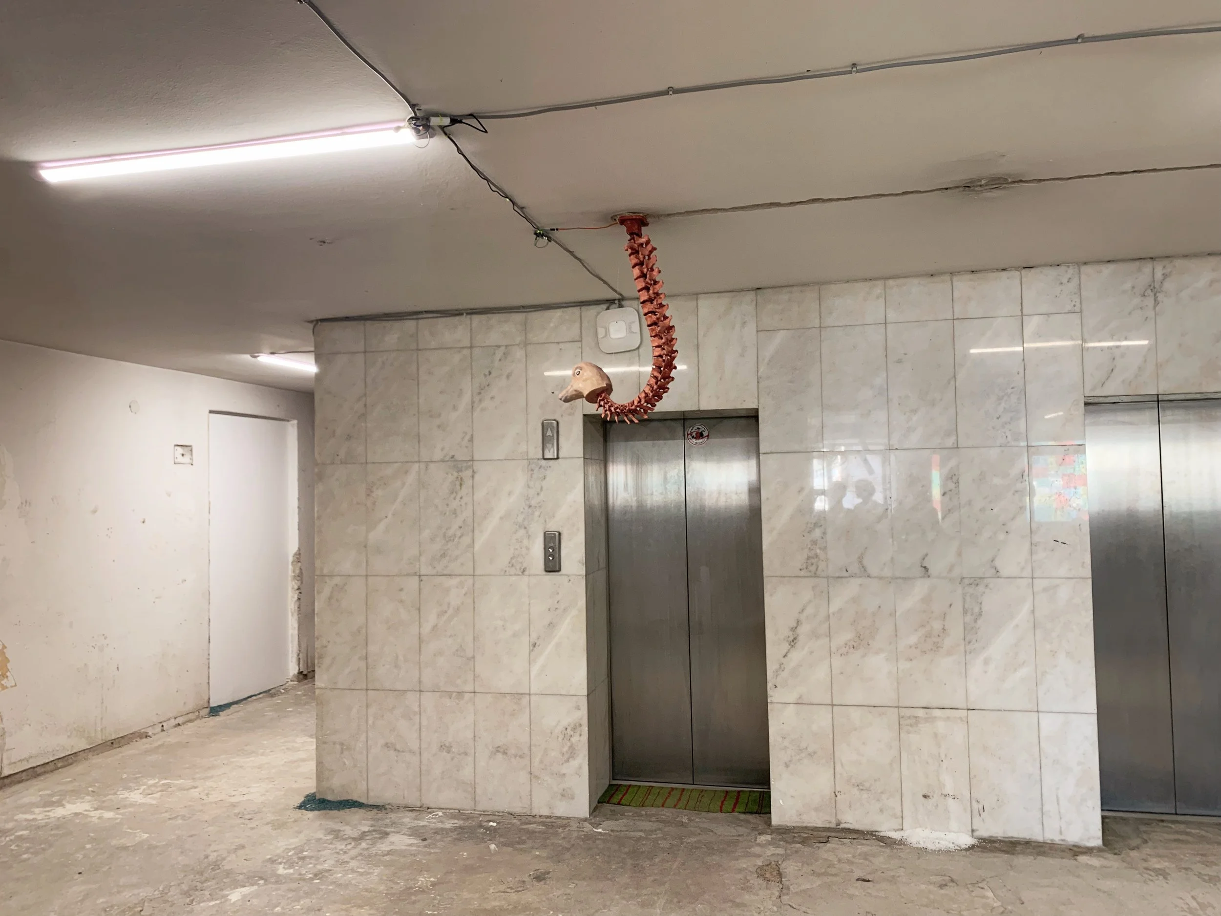 Young Slovenian art students going to thrift stores. We took a walk and talked about art schools and biennials. They showed me their work, a studio turned in a friendly social space, with some curious objects, and a kind of kintsugi done on a concrete floor.