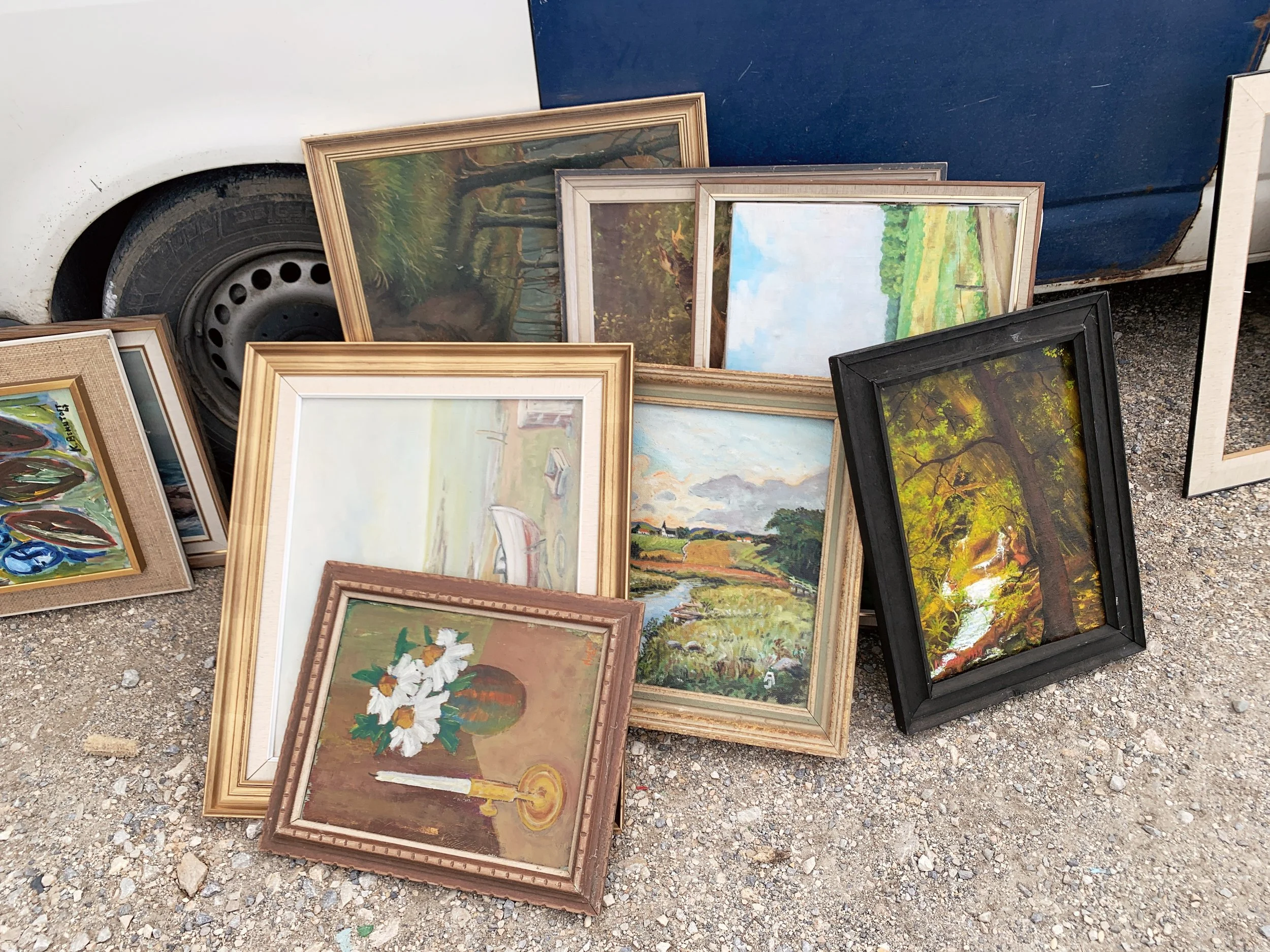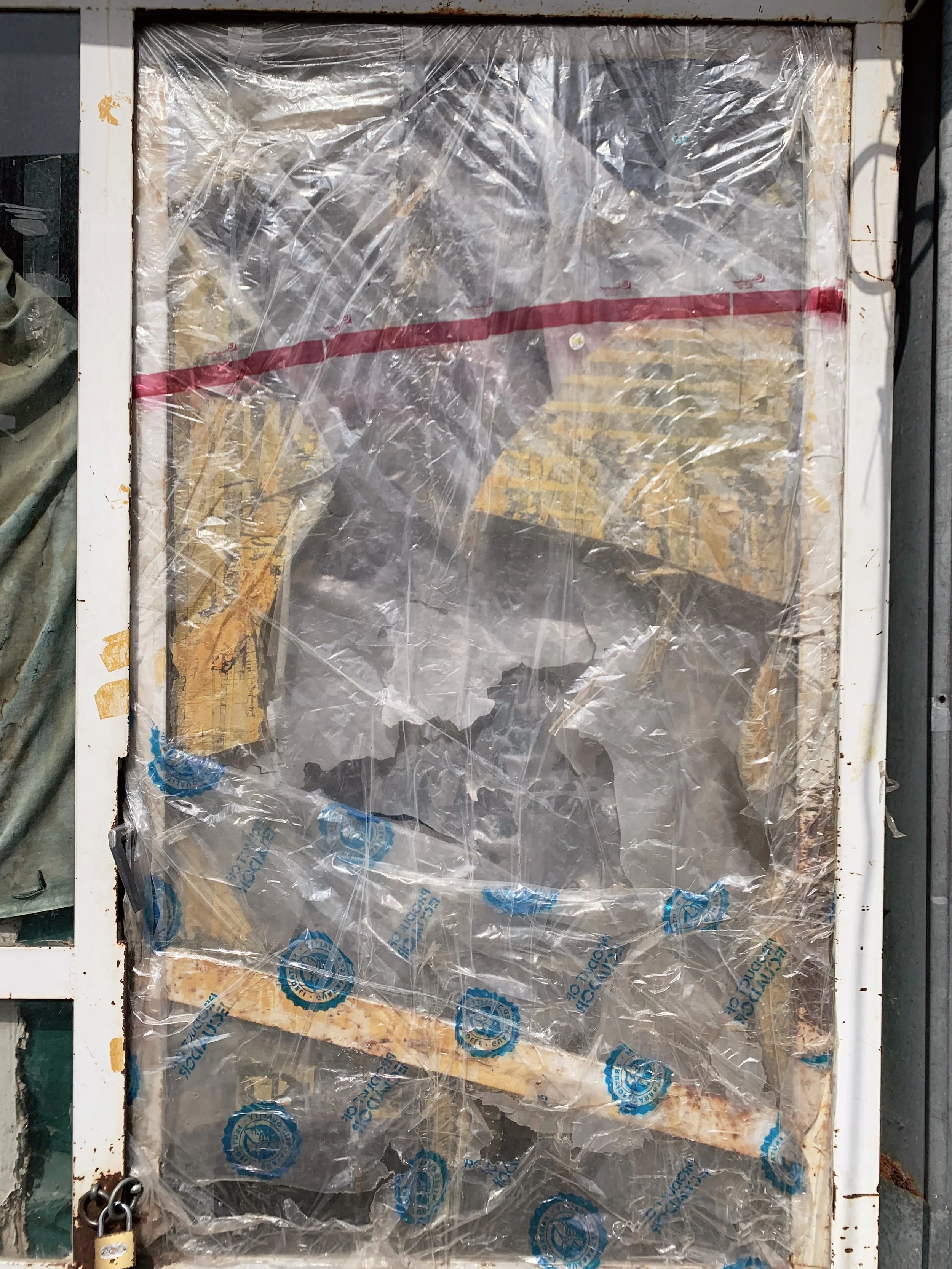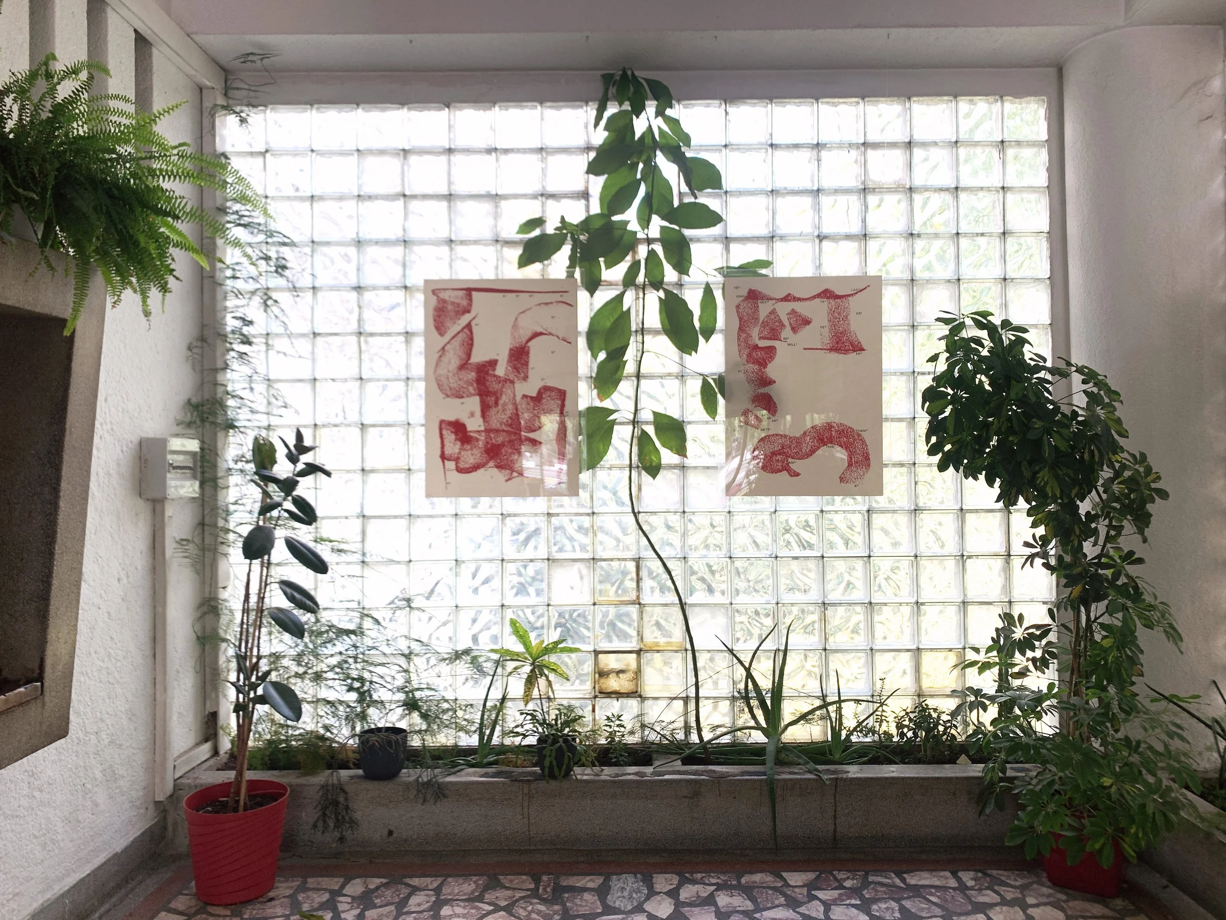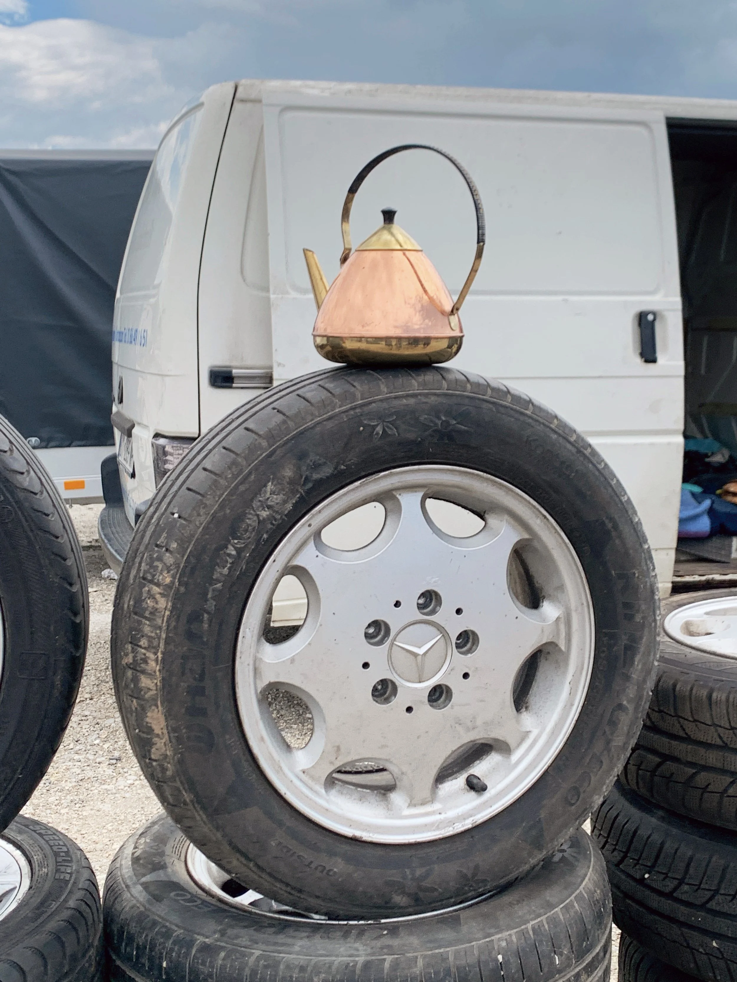 Young Slovenian art students going to thrift stores. We took a walk and talked about art schools and biennials. They showed me their work, a studio turned in a friendly social space, with some curious objects, and a kind of kintsugi done on a concrete floor.