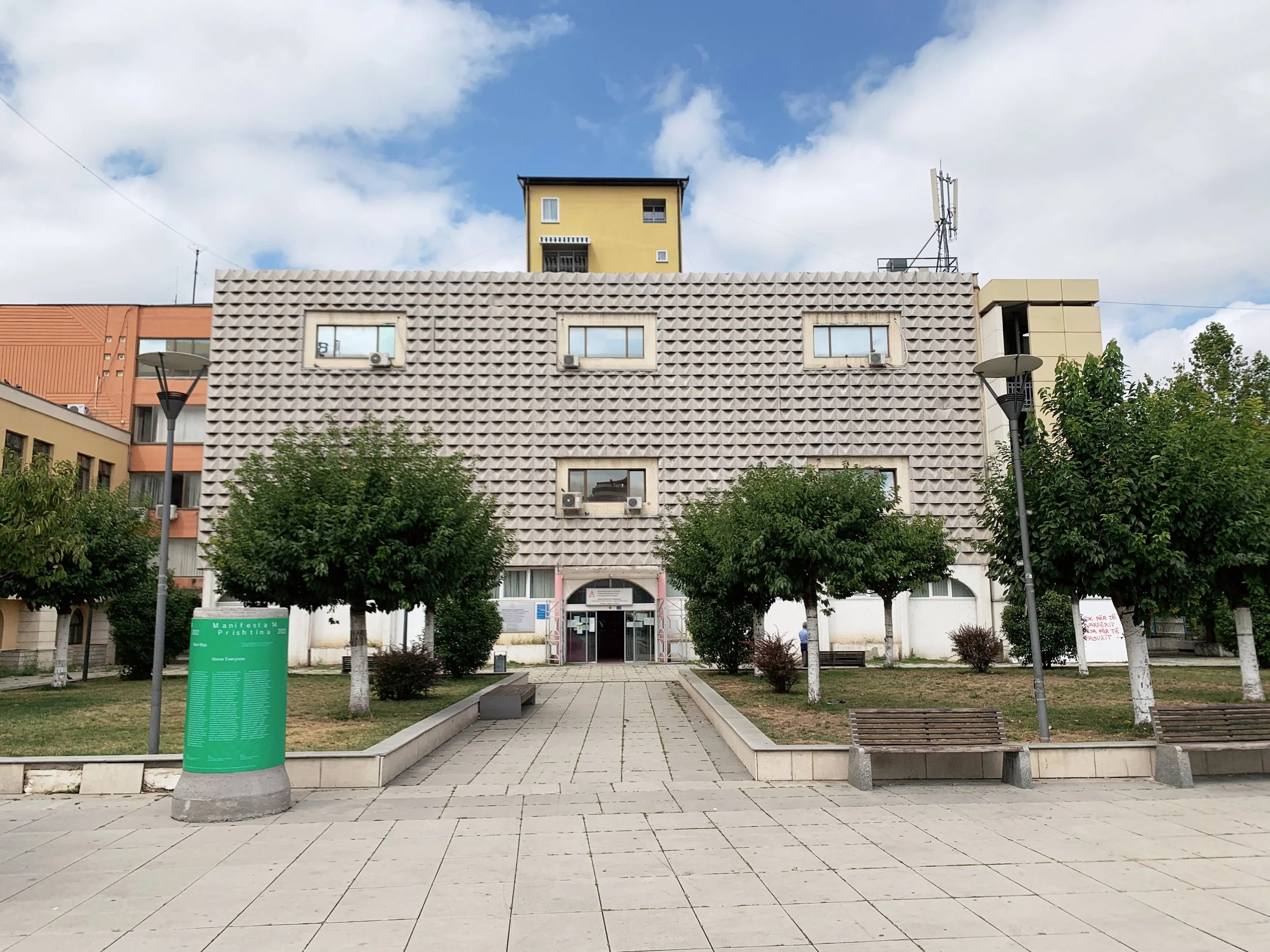 In lieu of offering a definitive statement on a particular SICAS, I will endeavor to share a present mediagraphy, performing the partial, mediated epistemic practices applicable to this dissertation’s conventions and spatial affordances, and in addition, a range of forthcoming parergonal accompaniments, including an essay film, a visual diary, more obliquely related impressions and whatever other mediated revisitations are to come (add to and amend). I’ve already shared a little of my encounter with the well-established and reflected-on documenta 15, to which my strategic contribution would be mainly to look beyond the disproportionate coverage of the antisemitism allegations towards the 1500+ artists working collectively in predominantly formerly-colonized and oppressed contexts on practicing ways of being and remembering. It also feels incumbent to state that colonial relations, far from being an essentialized binary, are experienced differently across a broad spectrum of interpellating effects and class relations. I’ll focus now on Pristina and Manifesta 14 at greater length, on account of the lesser extent of its available mediagraphy and its vulnerability to cultural amnesia.
