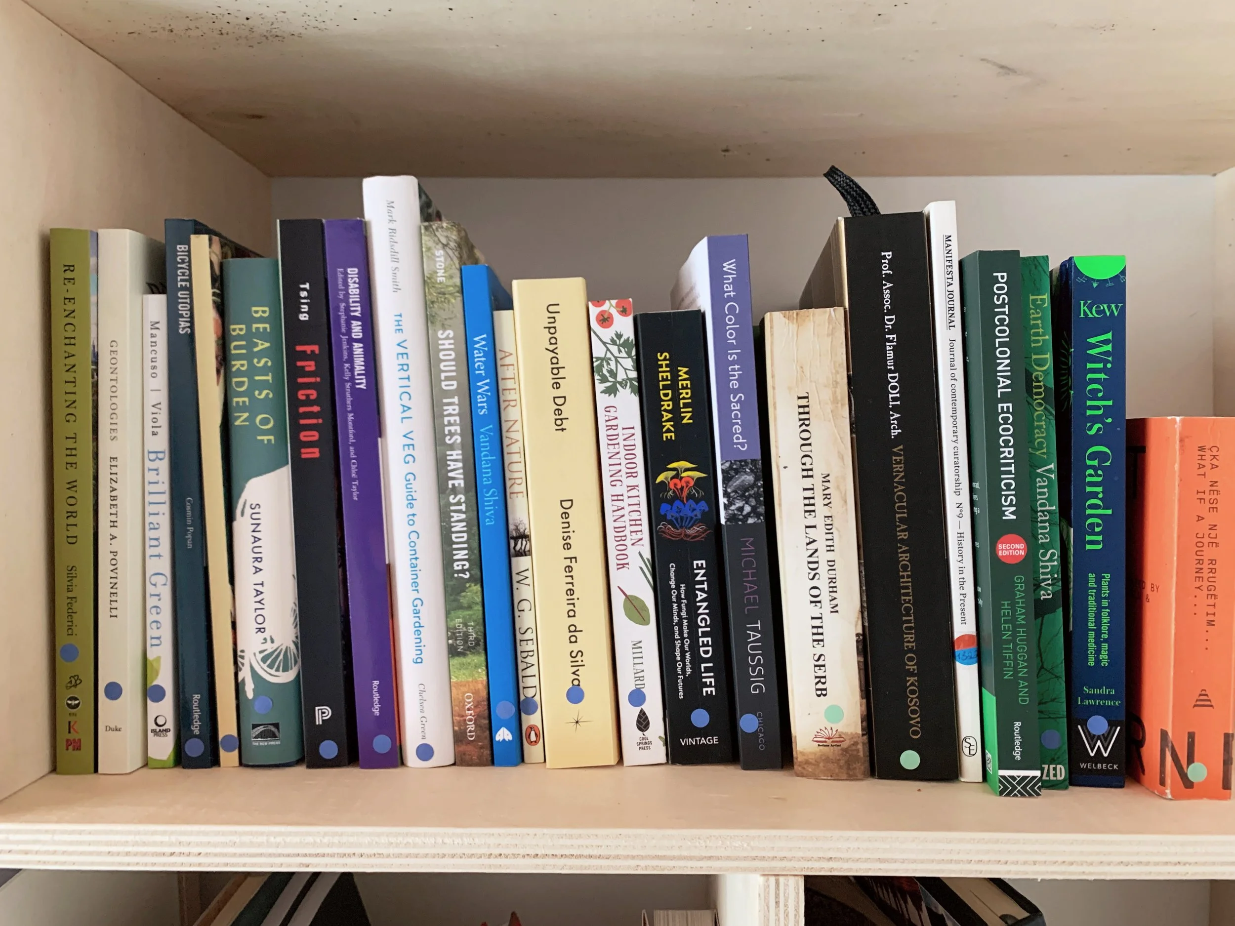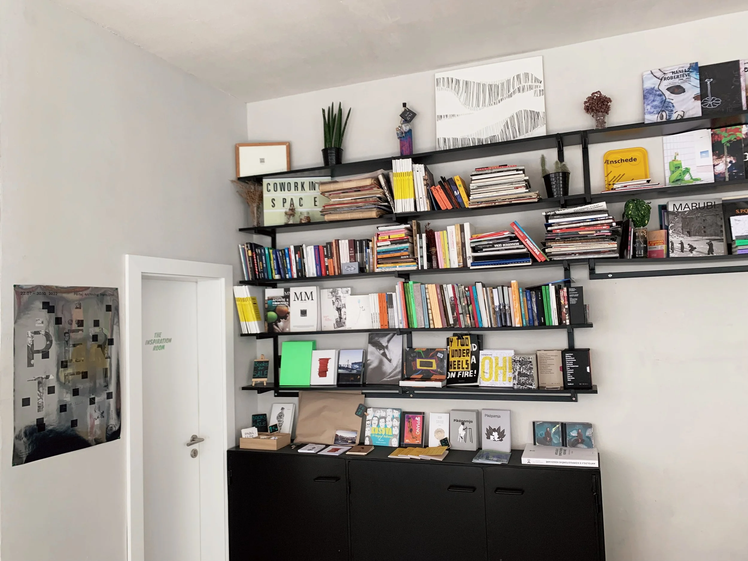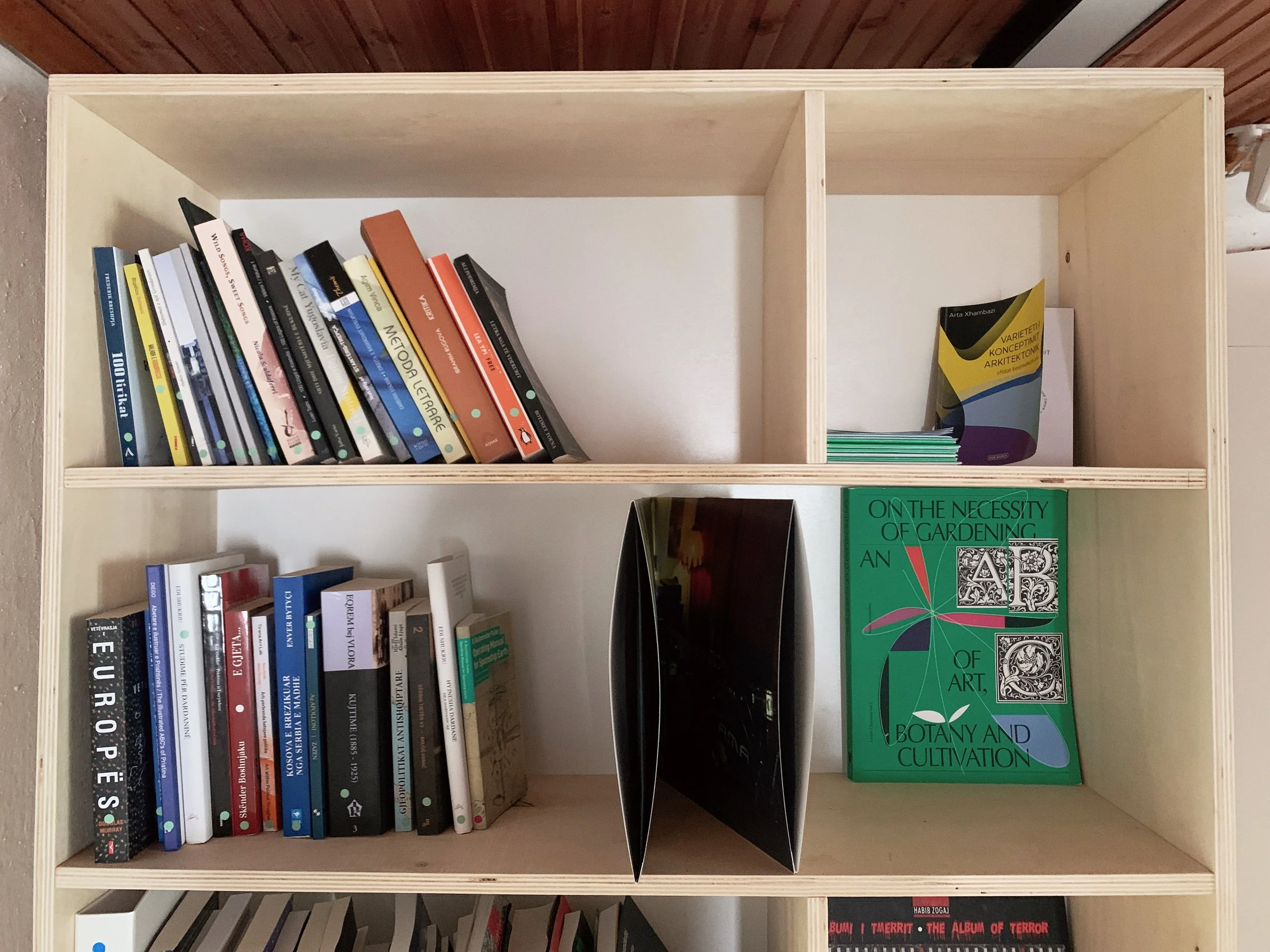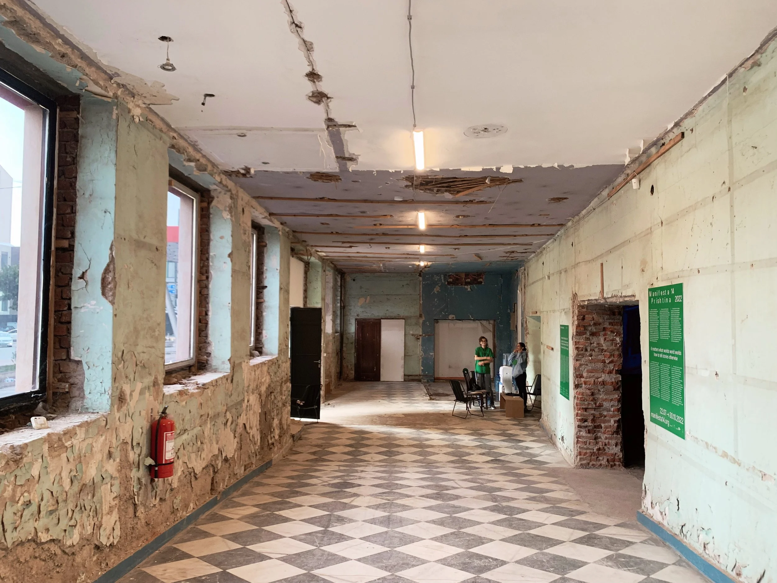 Part of this dissertation is written from the unfolding edition of Manifesta 14 in Pristina. I’m writing at a building that has been used as a residence, library, purportedly a former police administration building, and then left dormant until, at the instigation of Manifesta and with local partners, has been converted into a cultural center with a garden, exhibition spaces, screening room and a thoughtfully seeded library to be developed by the community—and presently cataloged according to sections like cultural memory, cosmopolitics, local history, ecology, and story-telling. The funds raised by Manifesta have been used to rehabilitate the building and it will remain a cultural center after the event concludes. In the Kosovo context, with its deeply felt and immeasurably devastating experiences, economic hardships, structuralized poverty, immobility, cultural loss and amnesia, endeavors to share, archive, restore and create tools for imagining the otherwise, feel compelling.
