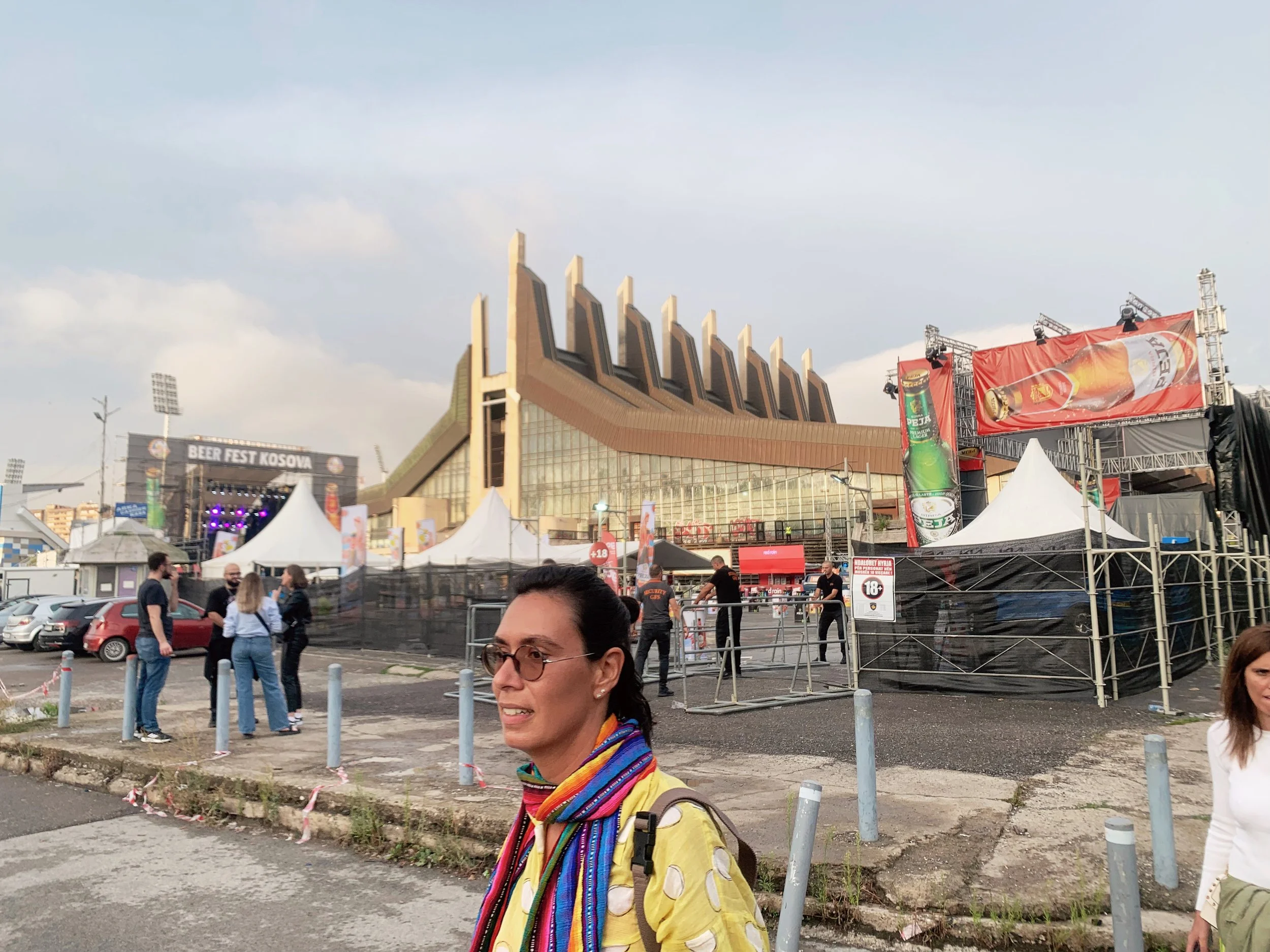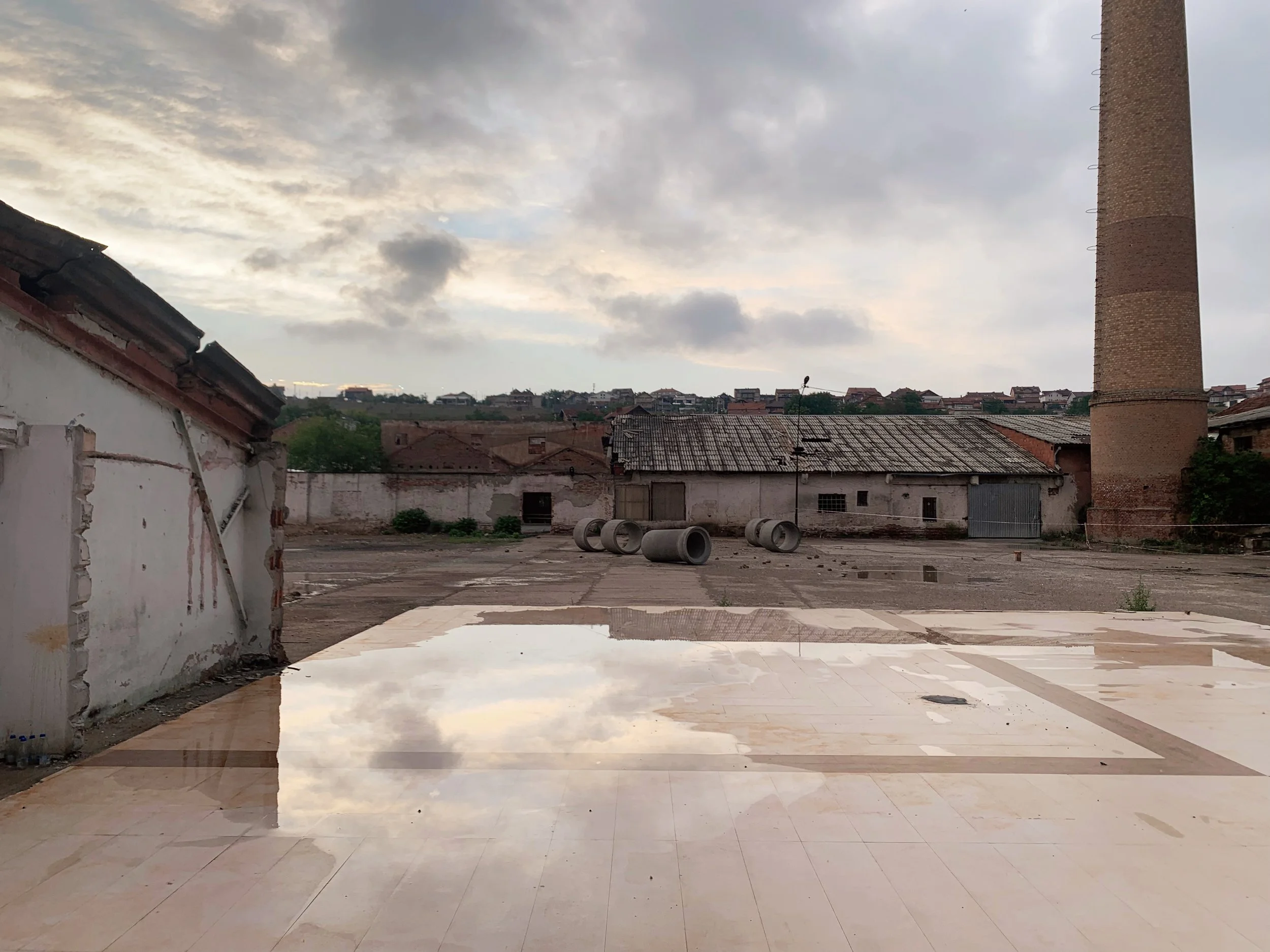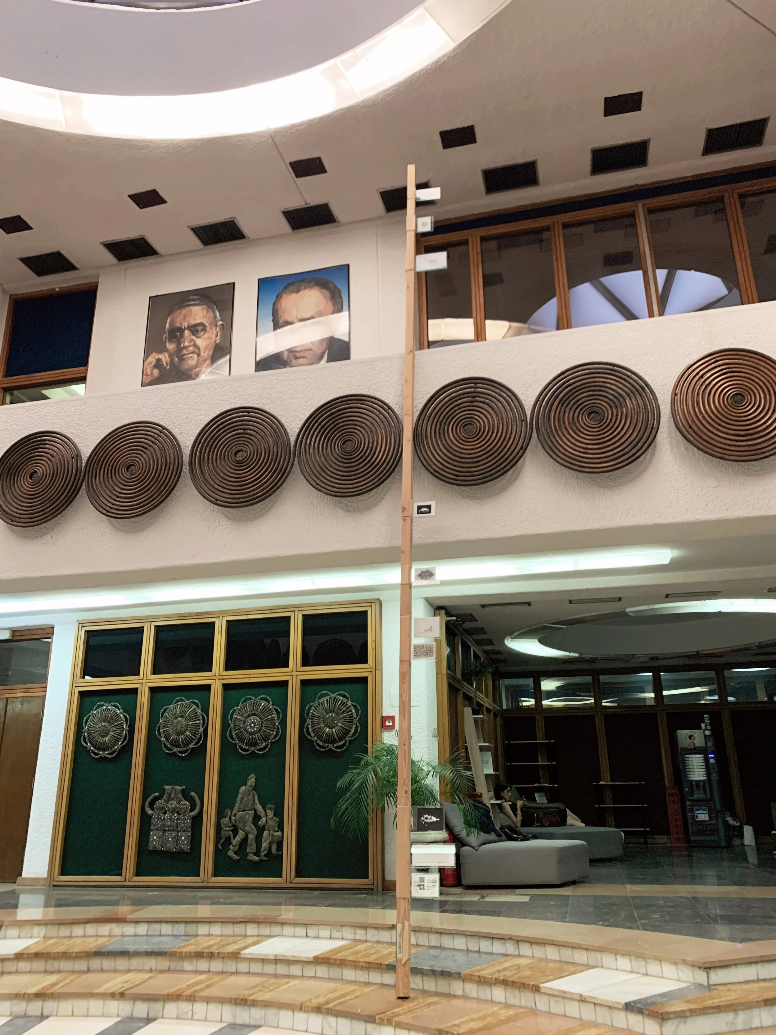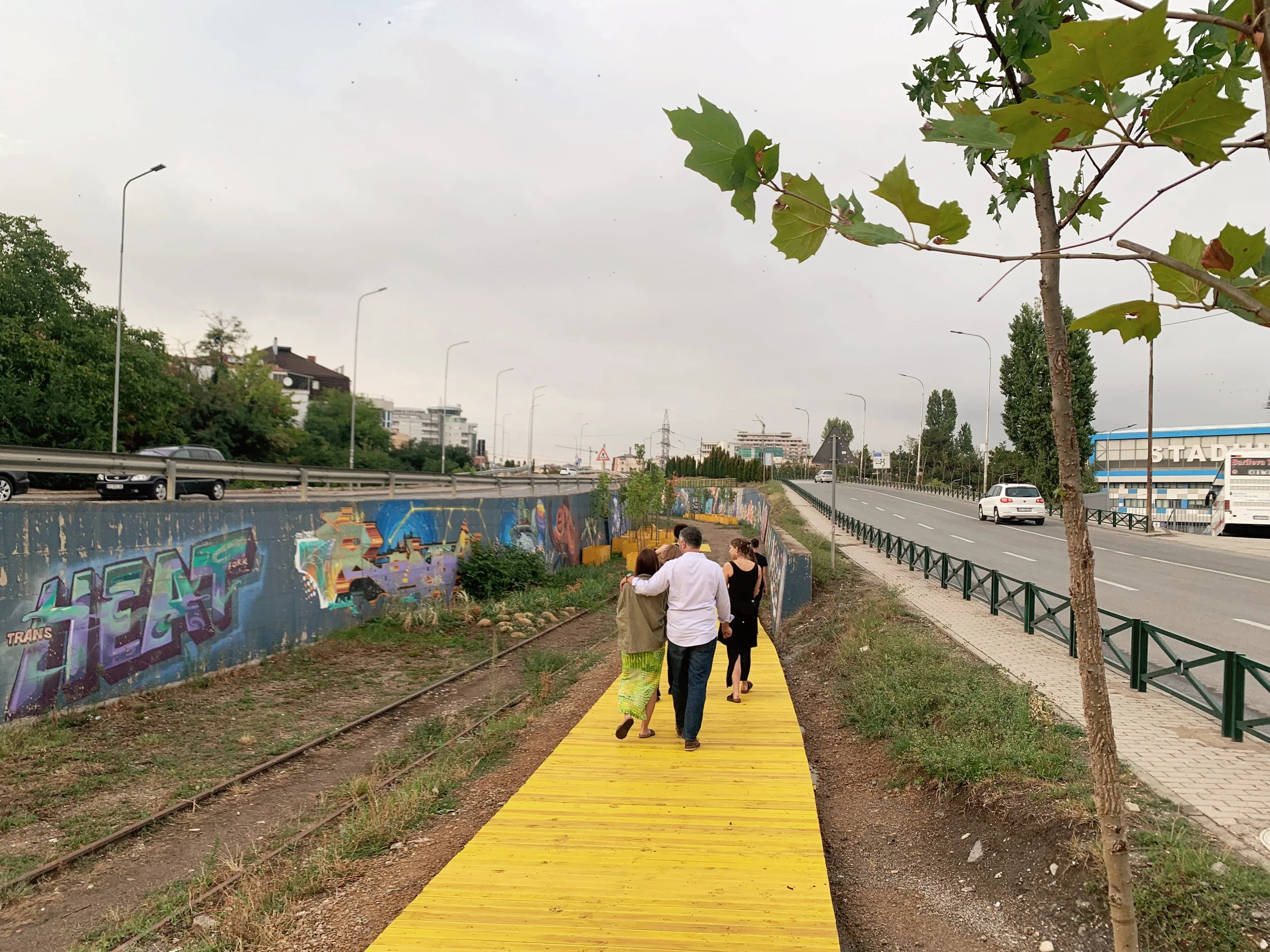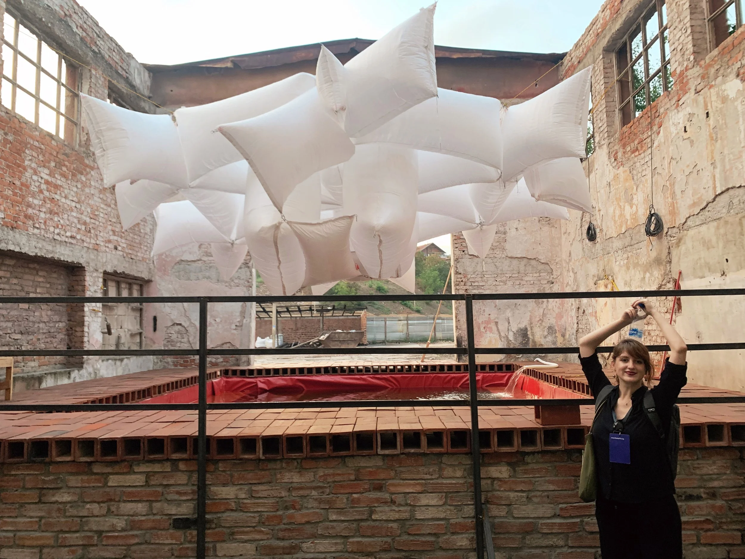 I joined a tour of some of the Manifesta sites that included the Palace of Youth and Sports—a deteriorating entertainment complex build in the mid-seventies, currently partially-privatized and utilizing—much to the dismay of our tour guide—a former playing field as an indoor parking garage, as well as a former brick factory converted into a provisional school and recreation center, a former printing house being used to exhibit an art installation, and an architectural intervention by the Italian architect Carlo Ratti that converted a decommissioned rail line into a bright yellow walking path with some ornamental landscaping. These initiatives elicited a range of responses from our group that included local West Balkan youth, two cultural programmers with the Flemish government, a graphic designer from Leipzieg interested in city-wide temporary design languages, a postgraduate working on issues of colonial extractivism in relation to performance studies, a psychotherapist and filmmaker working with diasporic Albanians and several others I didn’t get the chance to engage with. The tour was given by a local artist who reiterated her desire—and inability—to travel, while also expressing her appreciation for this cultural exchange.