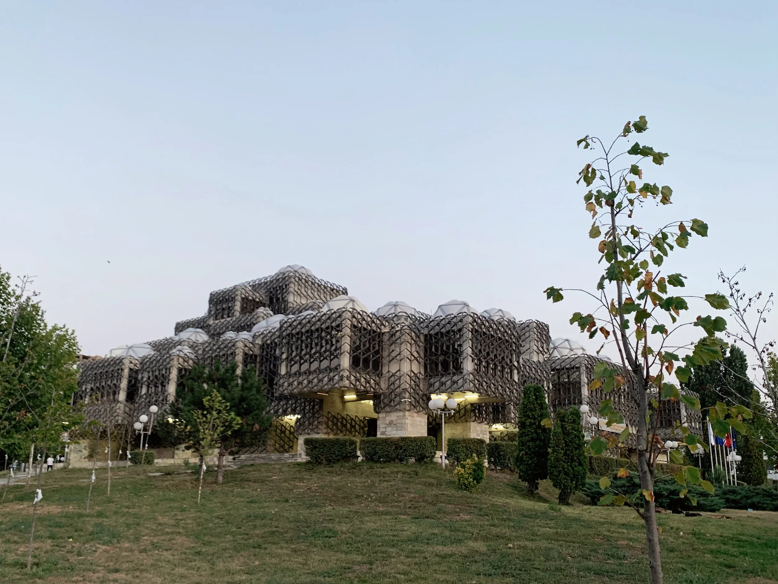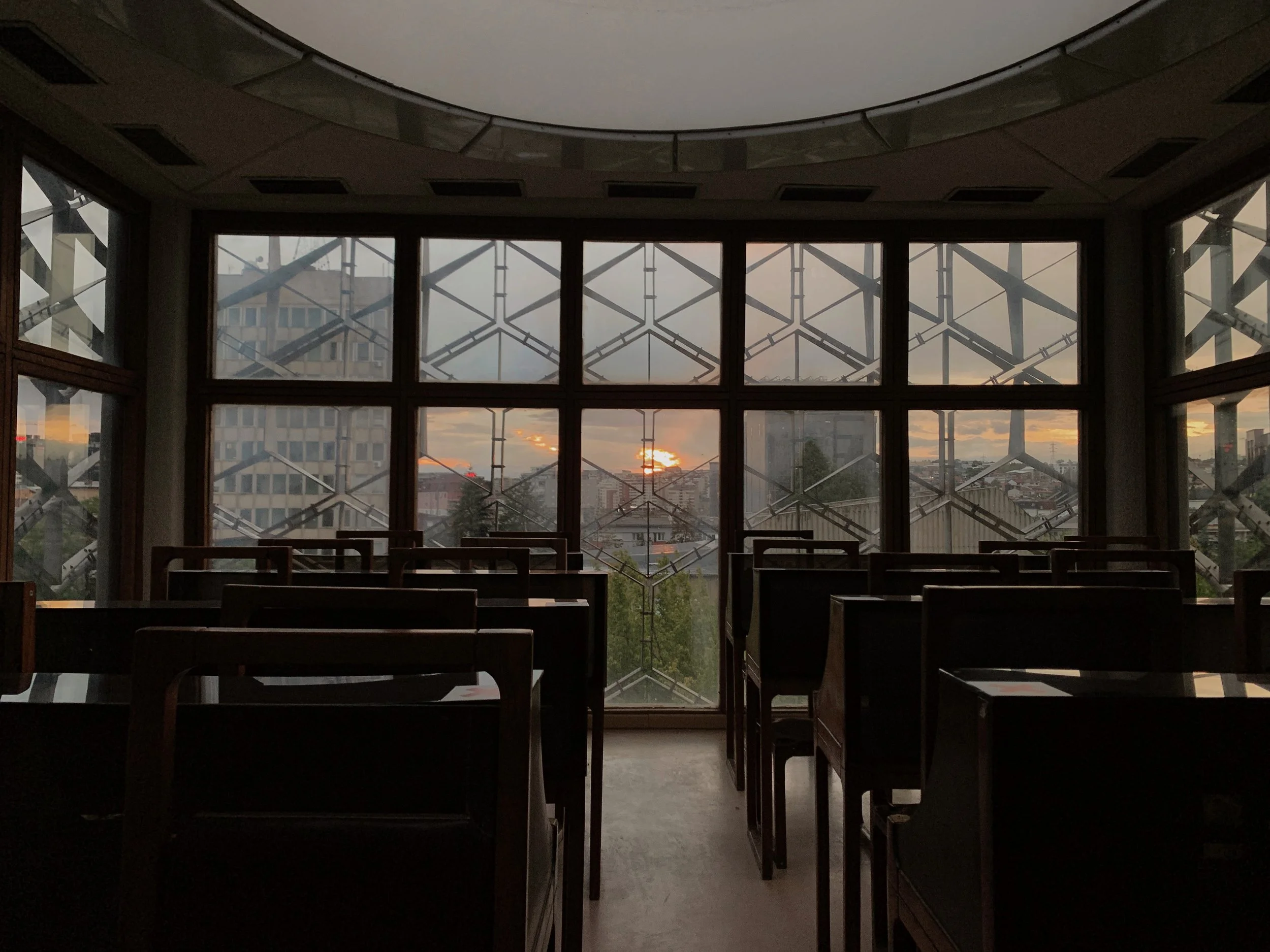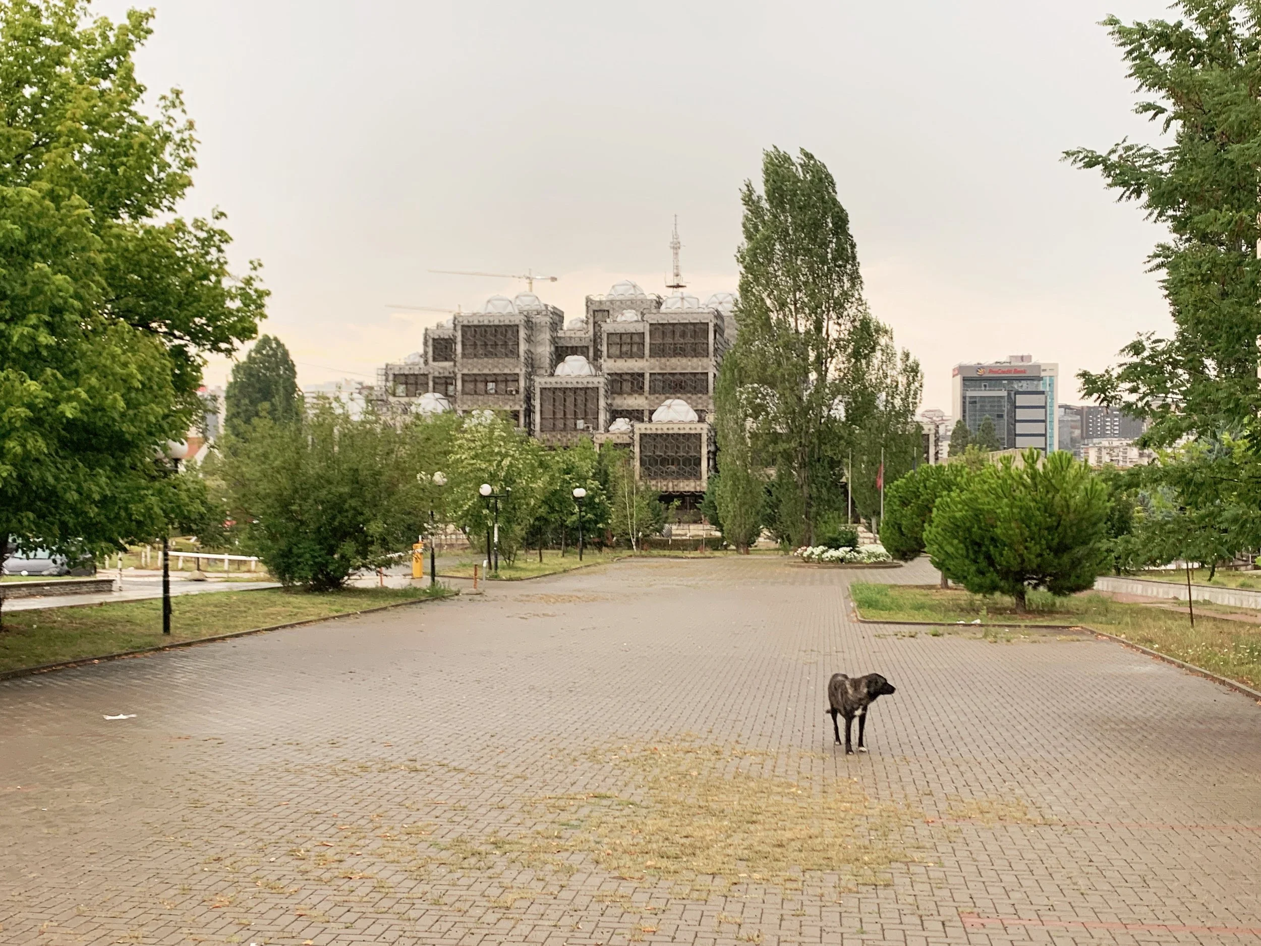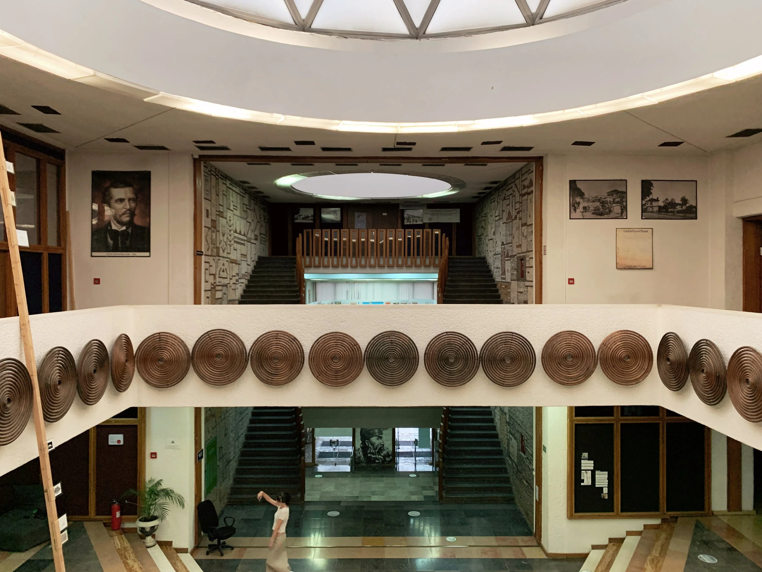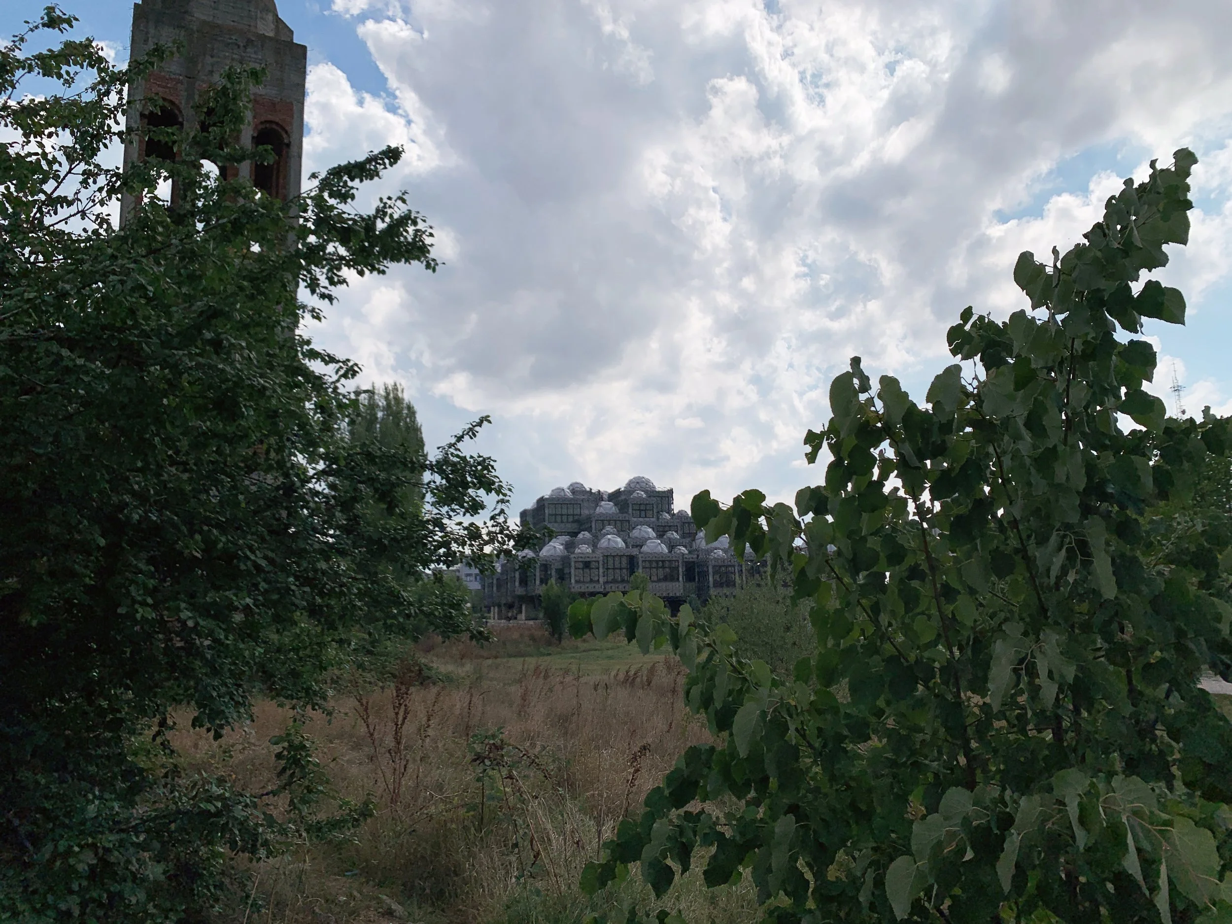 I joined a tour of some of the Manifesta sites that included the Palace of Youth and Sports—a deteriorating entertainment complex build in the mid-seventies, currently partially-privatized and utilizing—much to the dismay of our tour guide—a former playing field as an indoor parking garage, as well as a former brick factory converted into a provisional school and recreation center, a former printing house being used to exhibit an art installation, and an architectural intervention by the Italian architect Carlo Ratti that converted a decommissioned rail line into a bright yellow walking path with some ornamental landscaping. These initiatives elicited a range of responses from our group that included local West Balkan youth, two cultural programmers with the Flemish government, a graphic designer from Leipzieg interested in city-wide temporary design languages, a postgraduate working on issues of colonial extractivism in relation to performance studies, a psychotherapist and filmmaker working with diasporic Albanians and several others I didn’t get the chance to engage with. The tour was given by a local artist who reiterated her desire—and inability—to travel, while also expressing her appreciation for this cultural exchange.