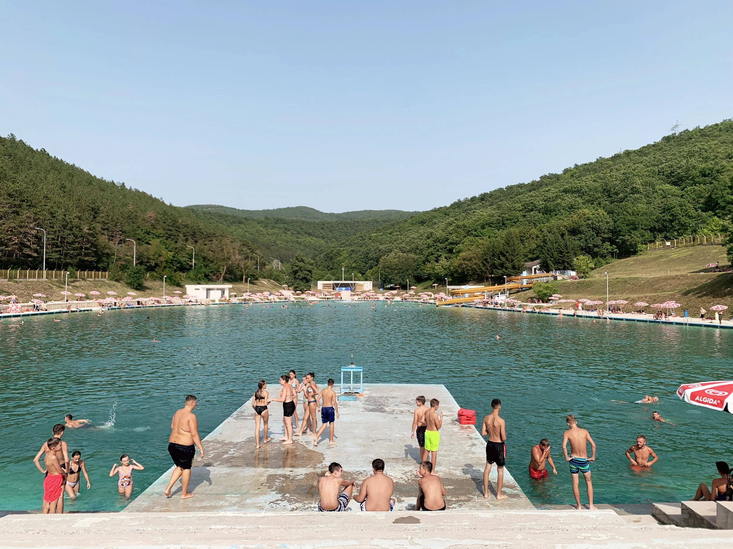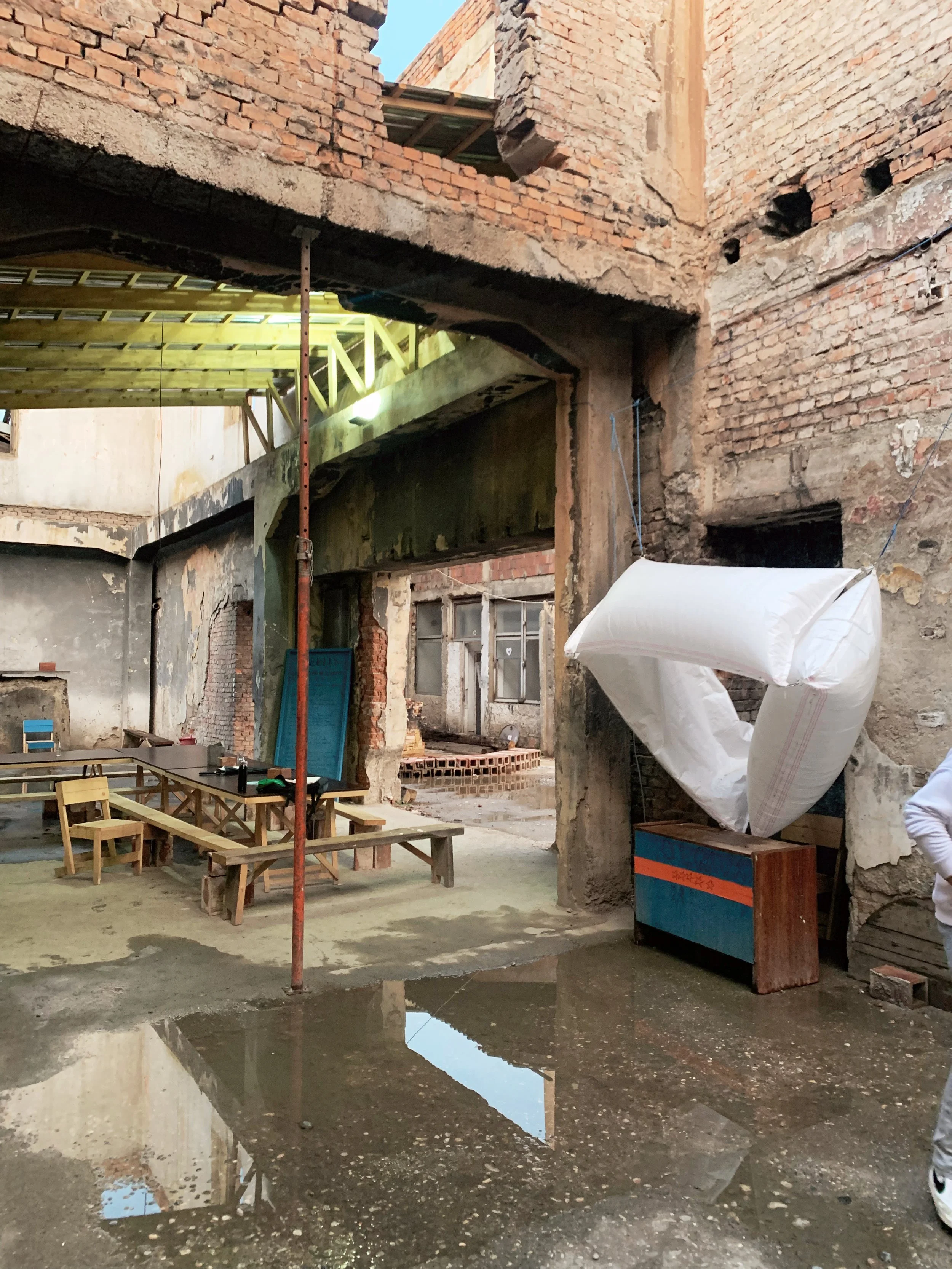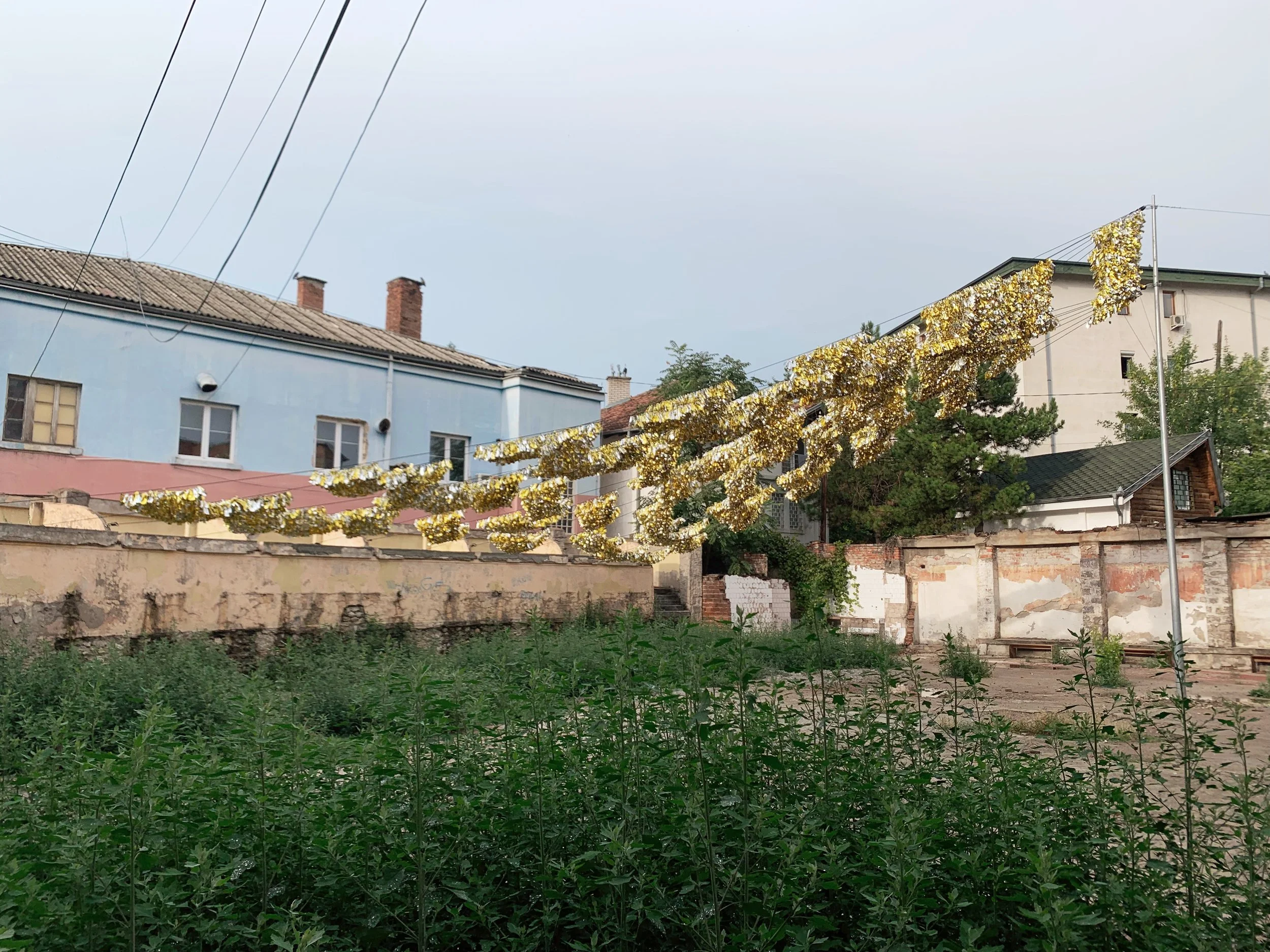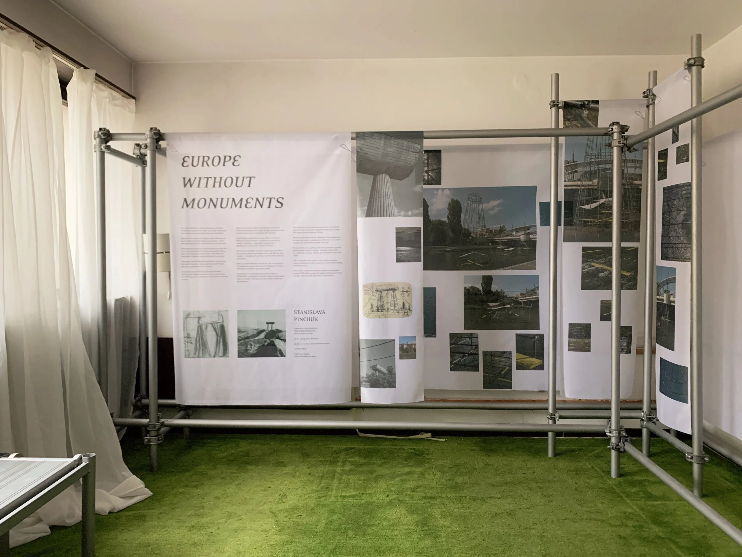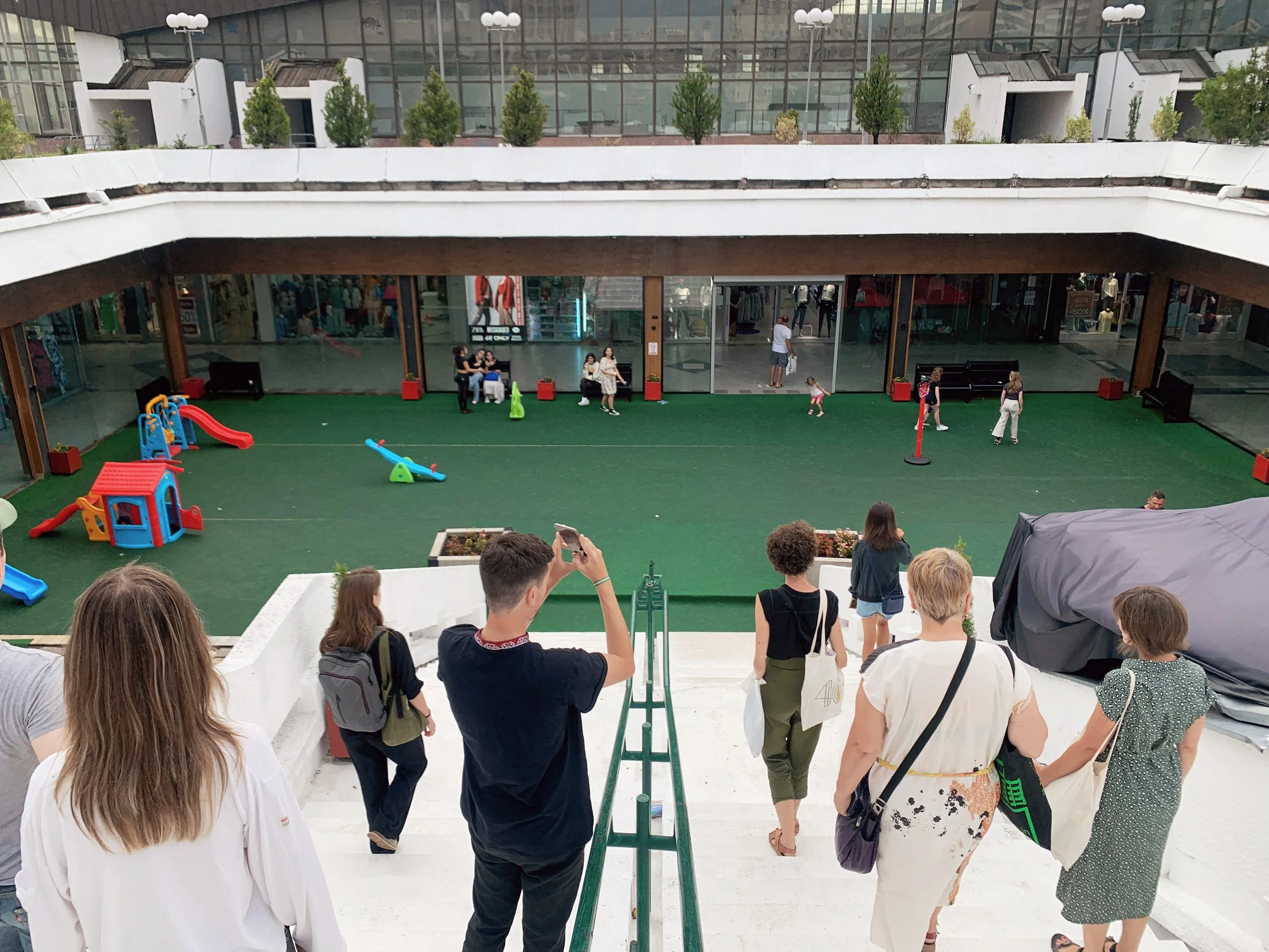 I joined a tour of some of the Manifesta sites that included the Palace of Youth and Sports—a deteriorating entertainment complex build in the mid-seventies, currently partially-privatized and utilizing—much to the dismay of our tour guide—a former playing field as an indoor parking garage, as well as a former brick factory converted into a provisional school and recreation center, a former printing house being used to exhibit an art installation, and an architectural intervention by the Italian architect Carlo Ratti that converted a decommissioned rail line into a bright yellow walking path with some ornamental landscaping. These initiatives elicited a range of responses from our group that included local West Balkan youth, two cultural programmers with the Flemish government, a graphic designer from Leipzieg interested in city-wide temporary design languages, a postgraduate working on issues of colonial extractivism in relation to performance studies, a psychotherapist and filmmaker working with diasporic Albanians and several others I didn’t get the chance to engage with. The tour was given by a local artist who reiterated her desire—and inability—to travel, while also expressing her appreciation for this cultural exchange.