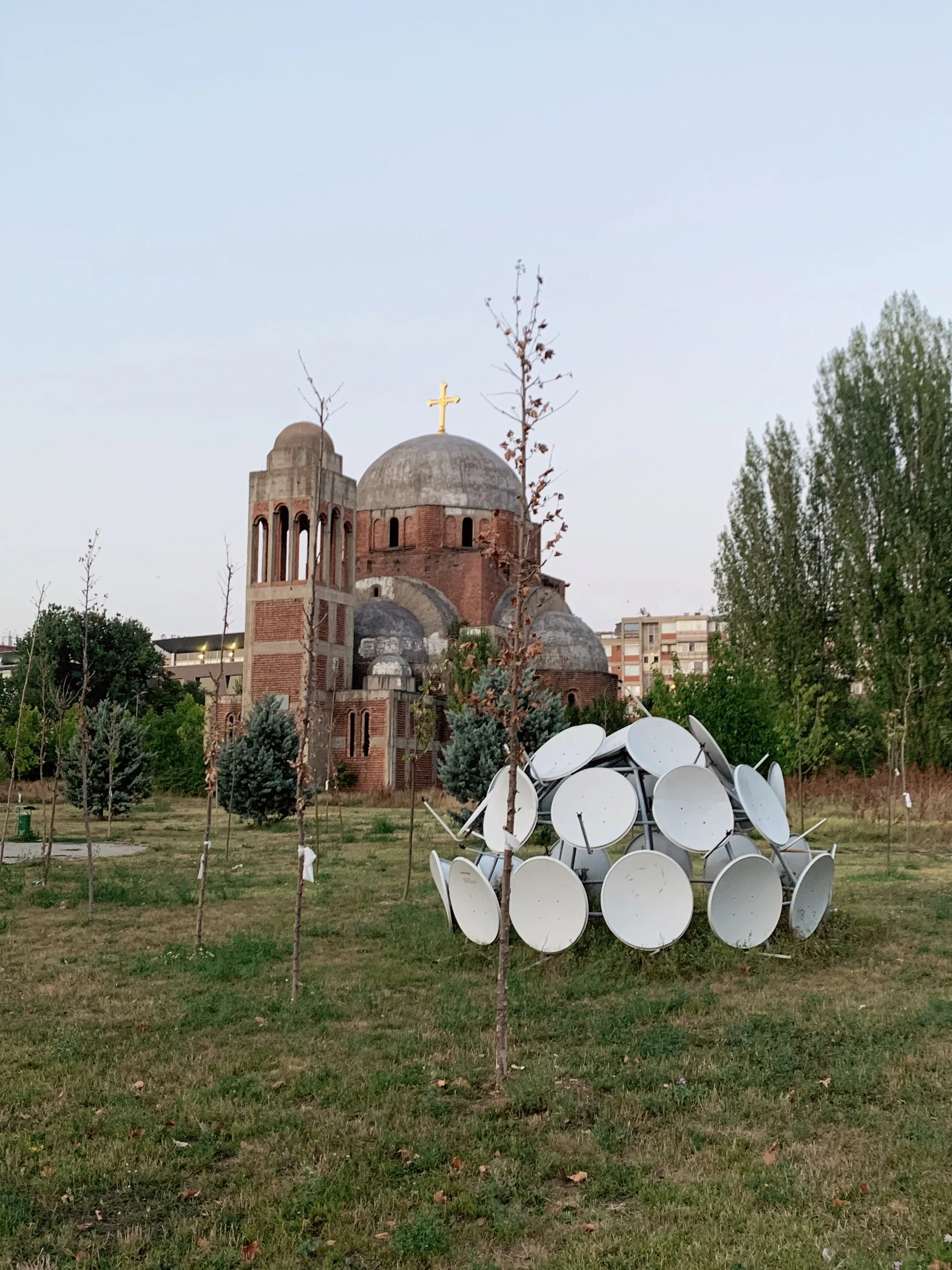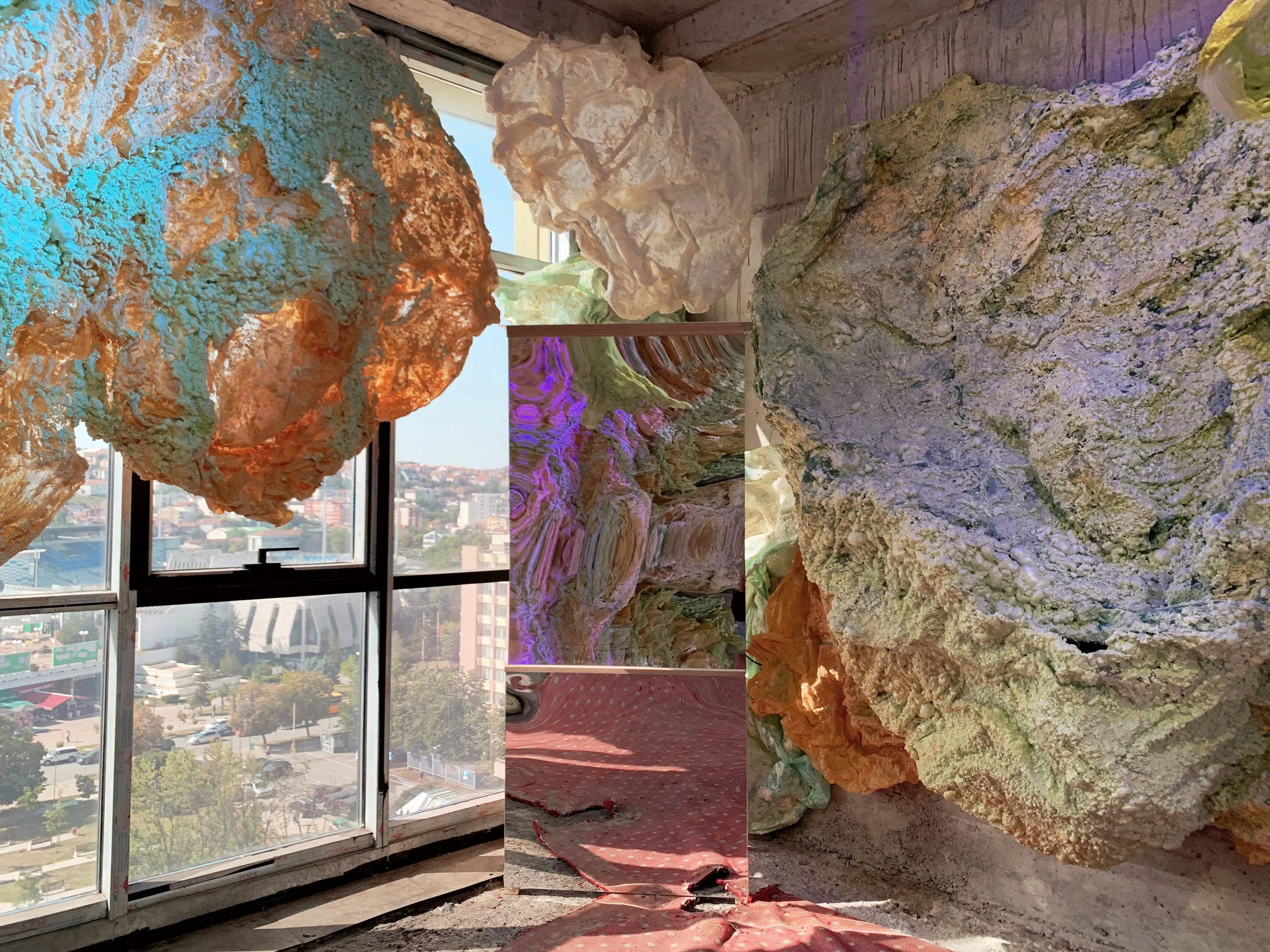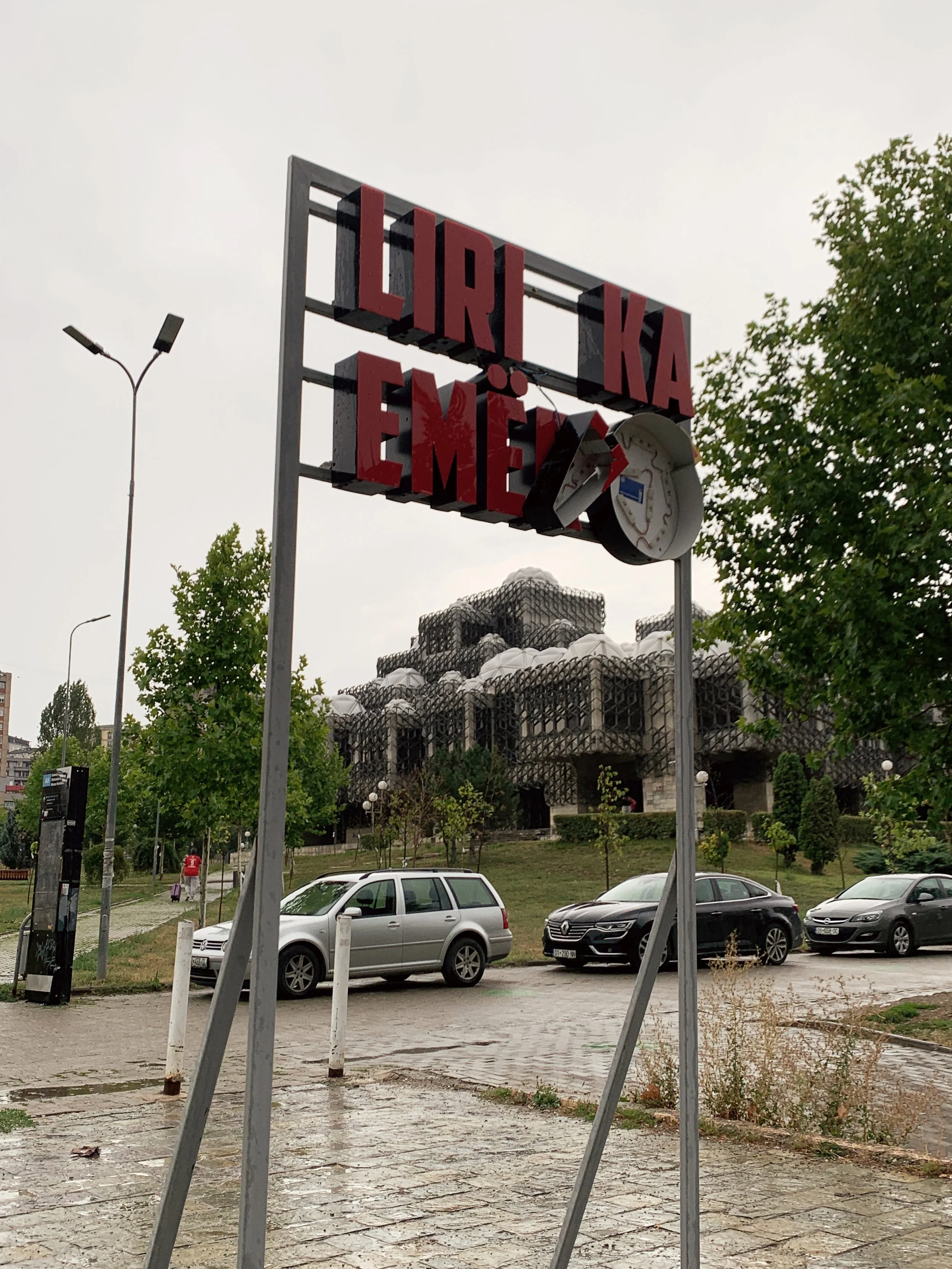 I approached this Manifesta in Pristina to learn the local history and see what kind of approach and effects this event would have. Pristina overwhelmed me with its warmth, presence, hospitality and sense of lingering time. People seemed decidedly less rushed than in the contexts I am used to. Sociality seemed to be the primary mode of entertainment and there was clearly a strong emphasis on family. The beloved, pedestrianized Mother Teresa boulevard was well used by the community and filled with strolling, talking, laughing, music, playing, eating, drinking, watching and thinking. Perhaps as an enduring inheritance of Ottoman cafe culture, I noticed people of all ages sitting for hours in street cafes socializing. Well into the late evening I would regard three generations sitting together, fully absorbed and enjoying their conversations. There were also farmers markets, outdoor film screenings, and other unrelated-to-Manifesta events happening along the hospitable city center. There were burektore’s every few blocks, serving hot savory pastries and drinkable yogurt for just a euro and change. For me these are examples of socioecological technologies that can be learned from and offer powerful counterexamples to the proliferation of automobilism, western fast food and the rhythms of neoliberal time. The effects on automobilism in particular are devastating and a significant contributor to air pollution, where levels can exceed 400. The marked shift in energy from the pedestrianized city center and the surrounding rings of traffic and coal power plants demonstrate the obvious need to reimagine cities through different infrastructural paradigms.