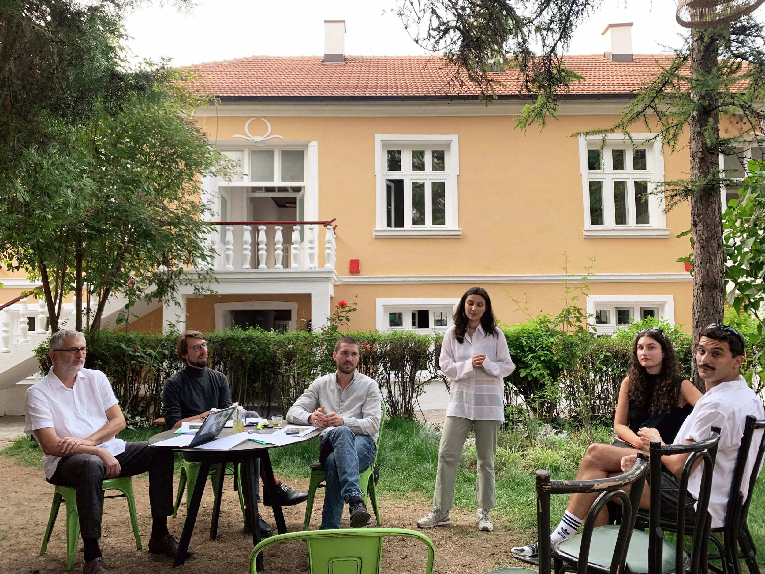 I arrived in Pristina in the afternoon and learned from the Manifesta website about an event happening that evening at the Centre for Narrative Practice. I arrived at a convivial garden, tucked behind a busy street, humming with conversation in the golden-blue evening light. Upon entering the building I was profoundly taken with the selection of texts in their nascent library, skillfully chosen for their influence on the facets of contemporary art we might describe as concerned with developing better relations on a shared planet. Upstairs was a screening room and a number of open studio project spaces that included works in progress and thematic historical archives.