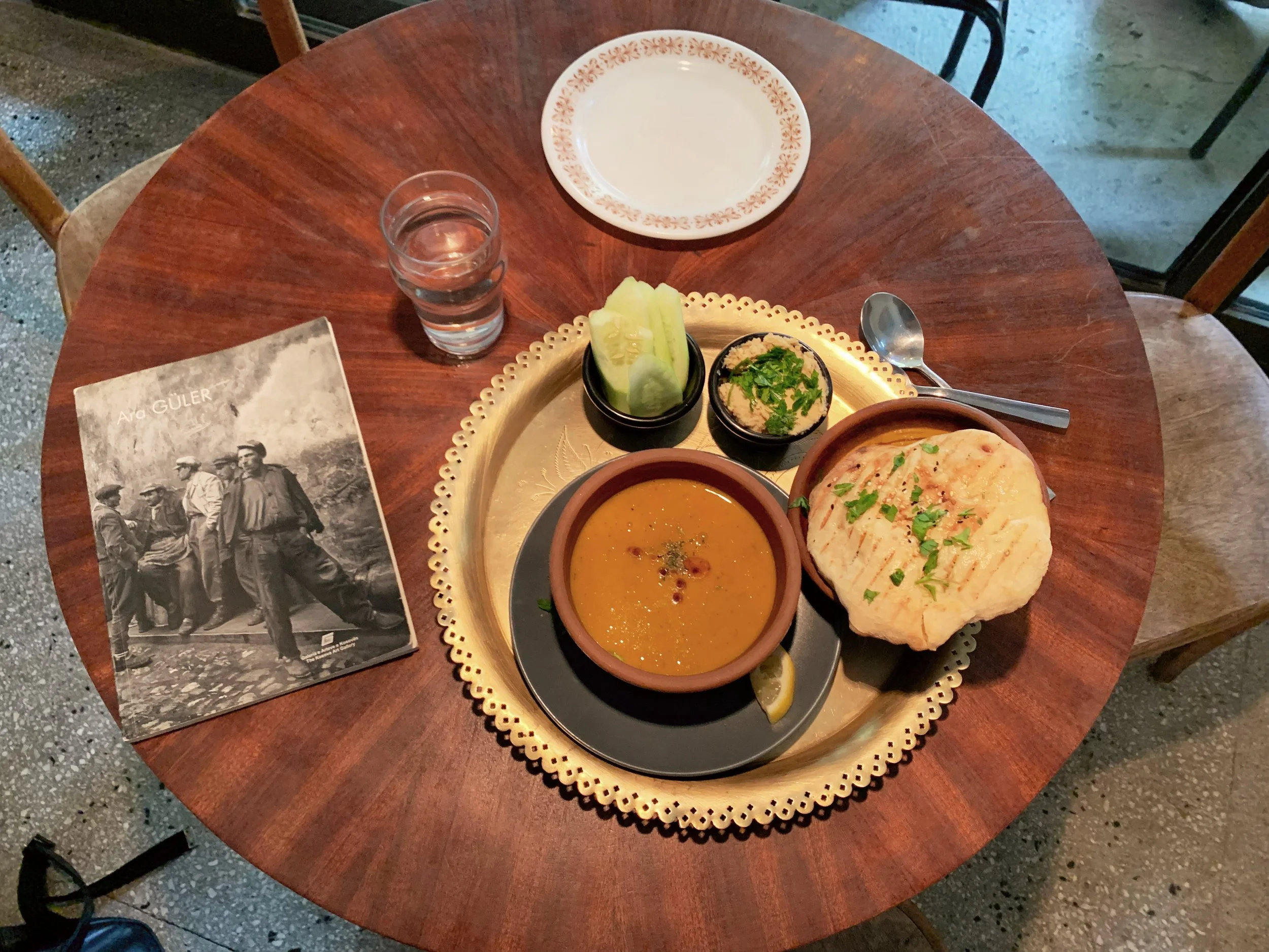 I leave quietly in the transition between venues and stop at a late night bakery for an oily layered dough pastry and some yogurt. It costs almost nothing.